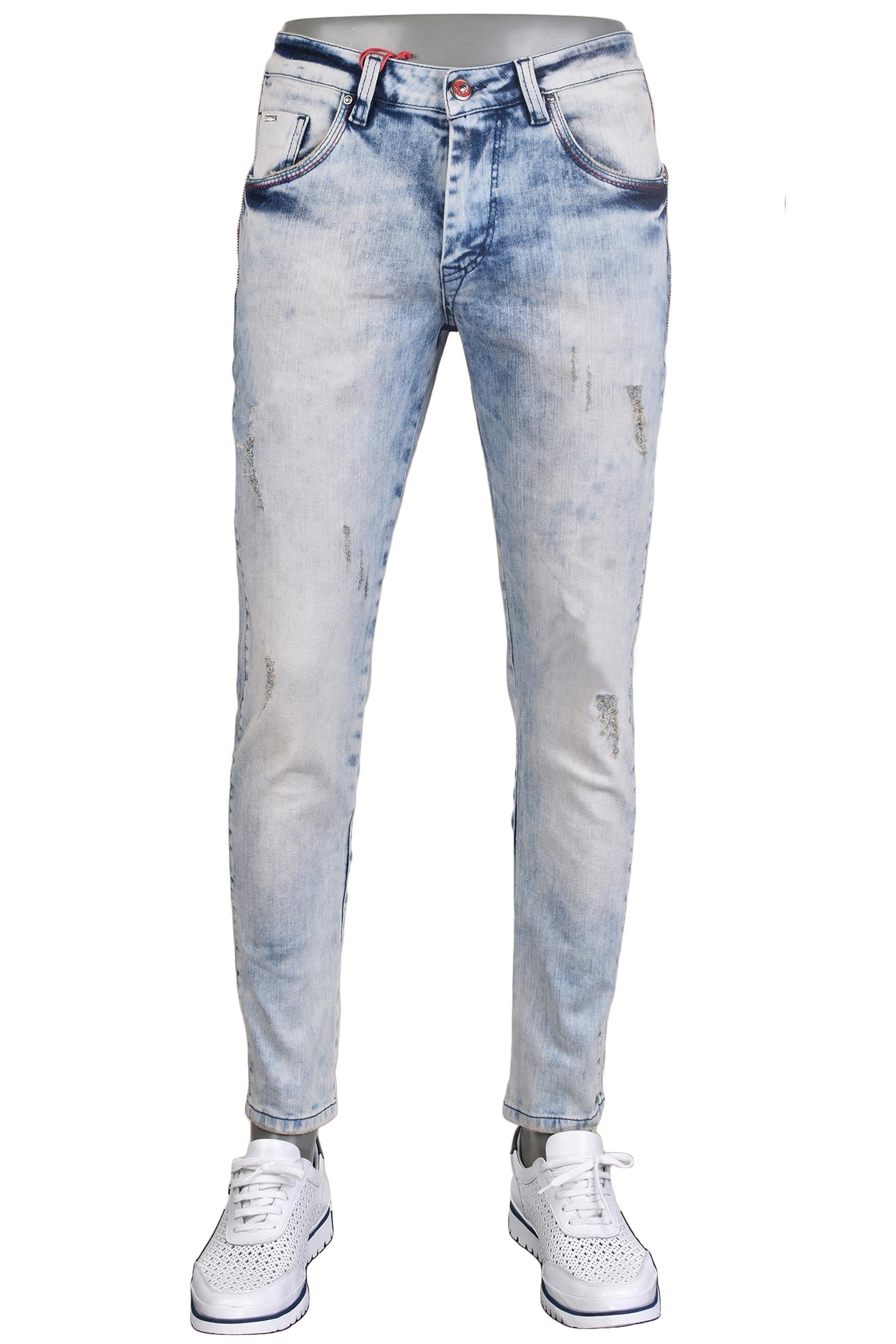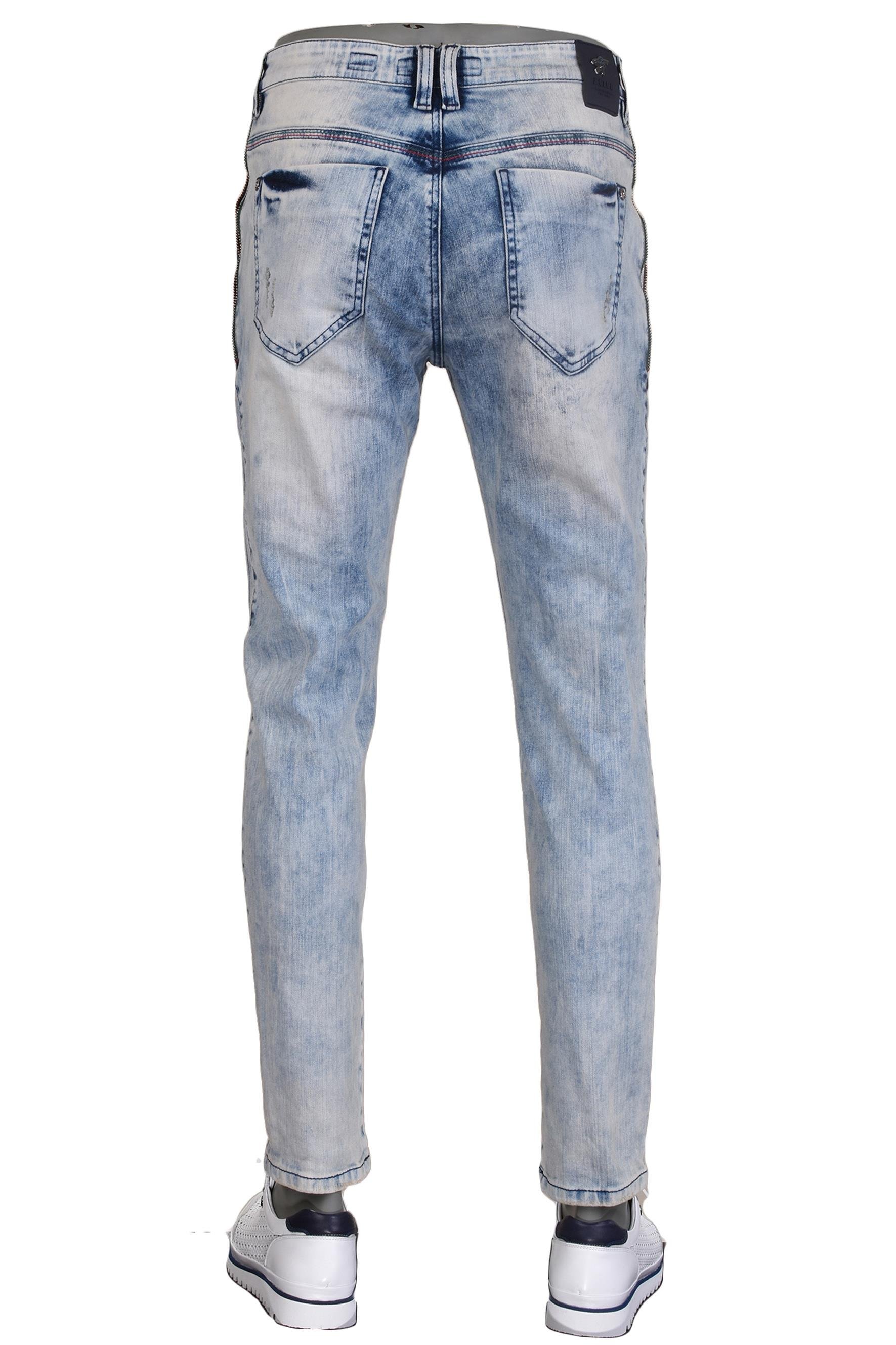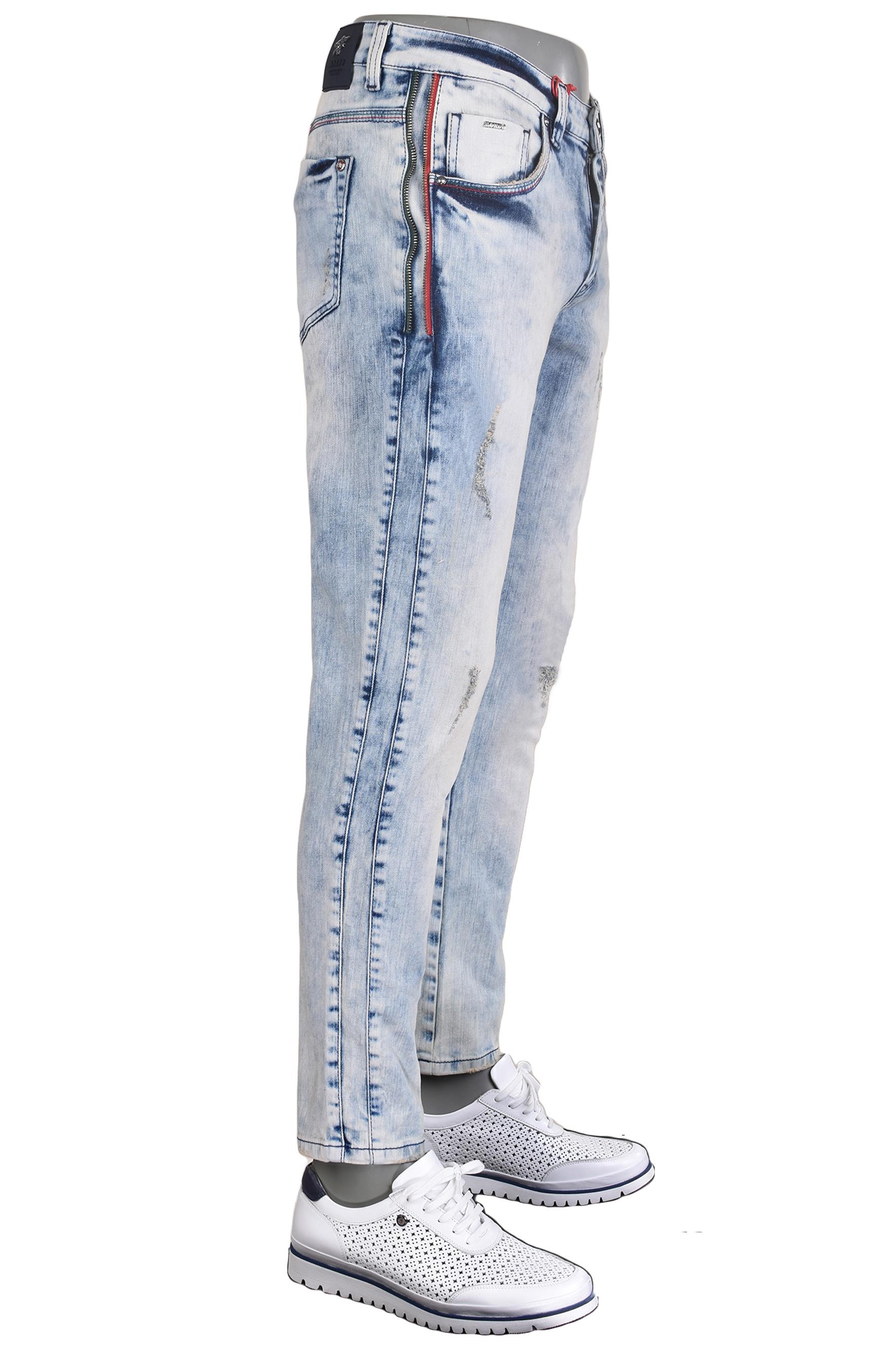 Açık Mavi Yanı Fermuar Detaylı Taşlanmış Jeans (P-1420 20)