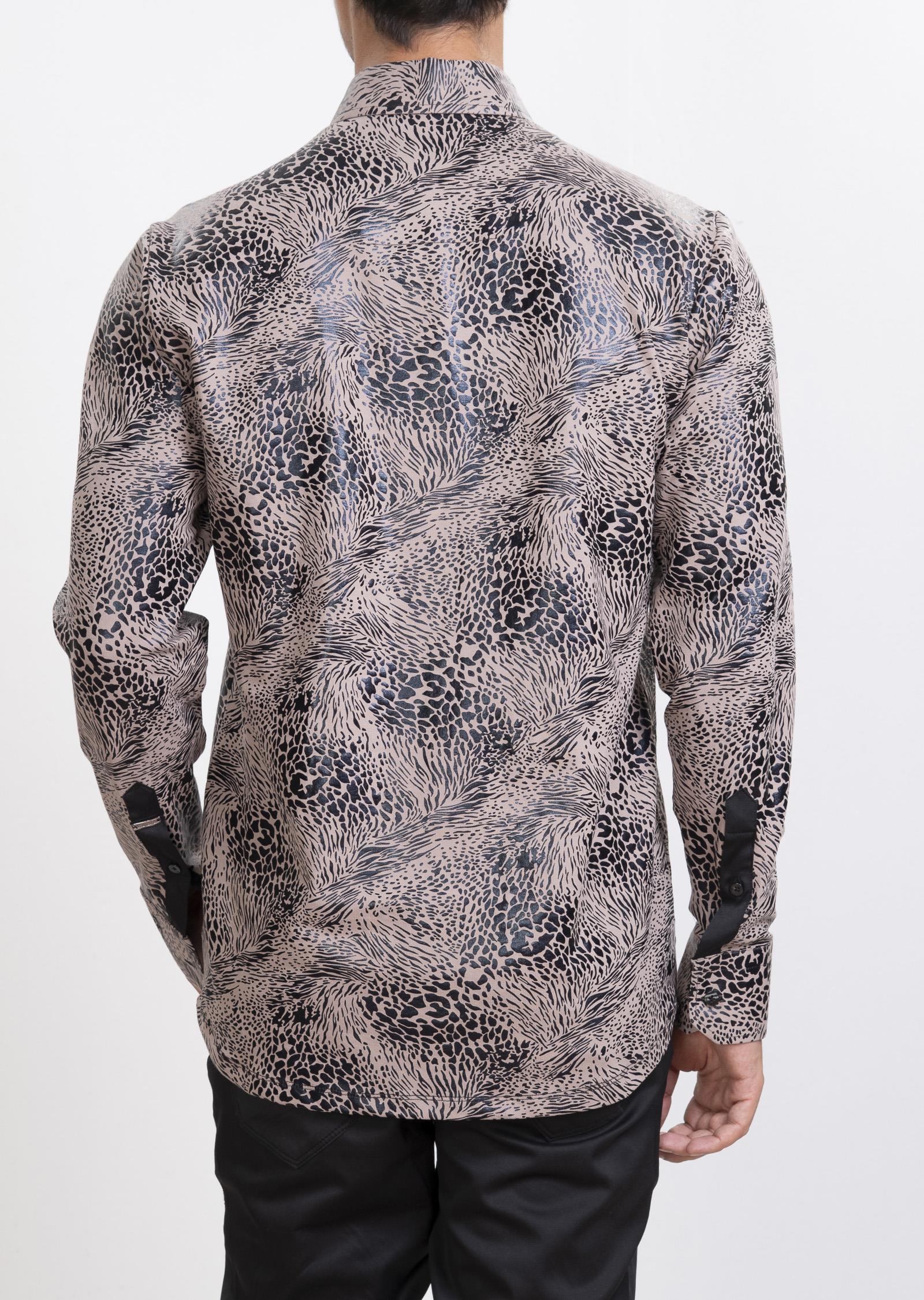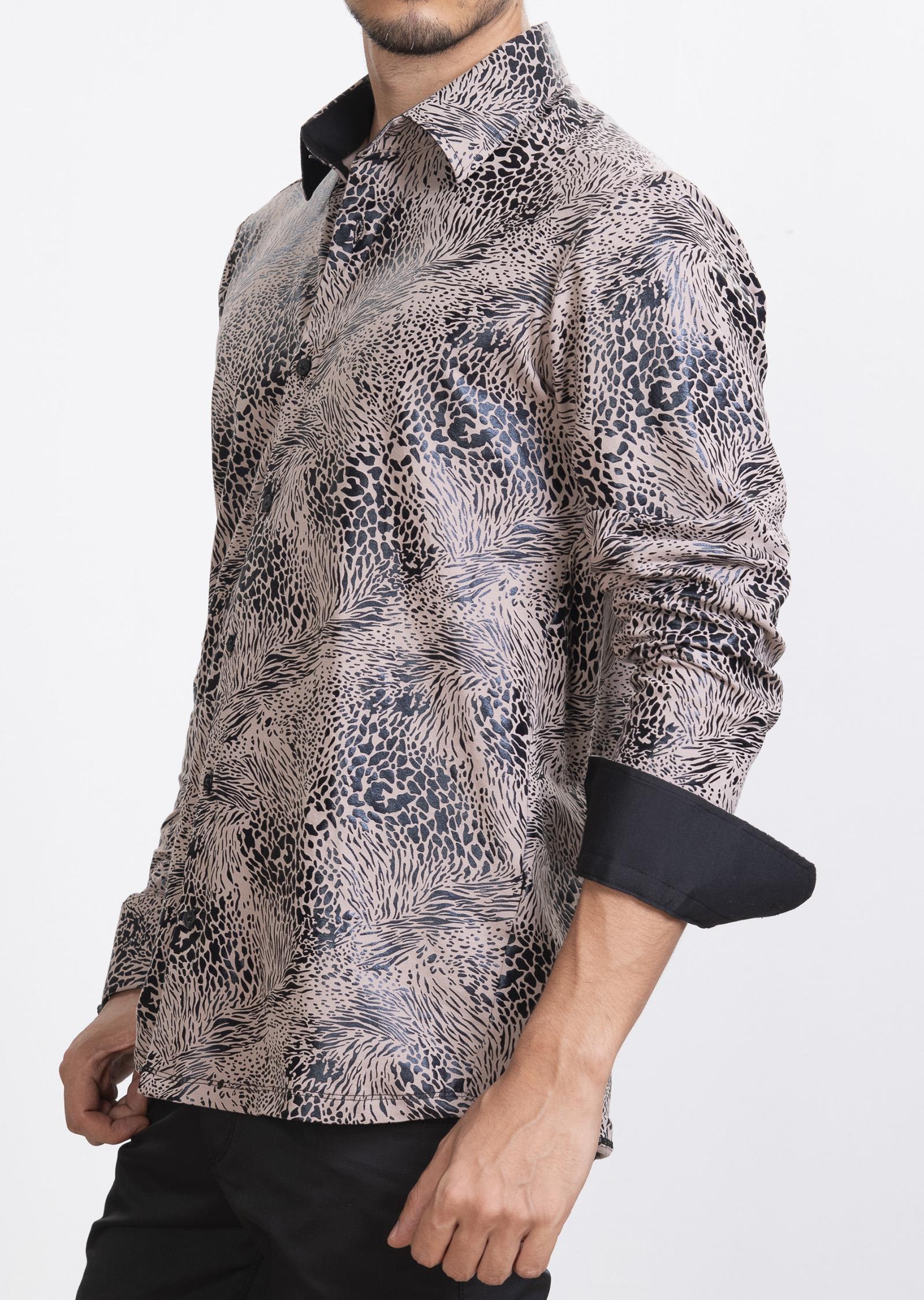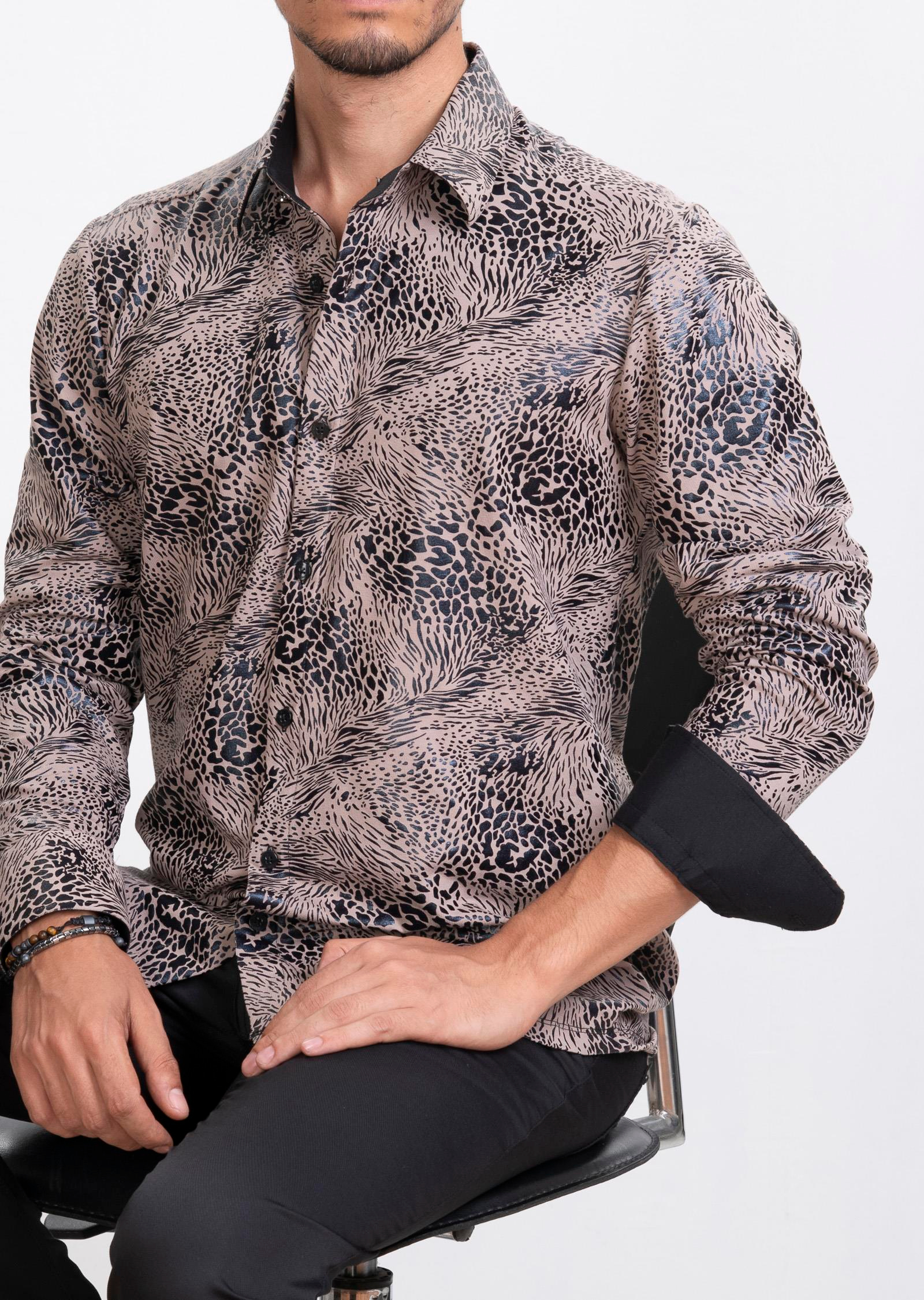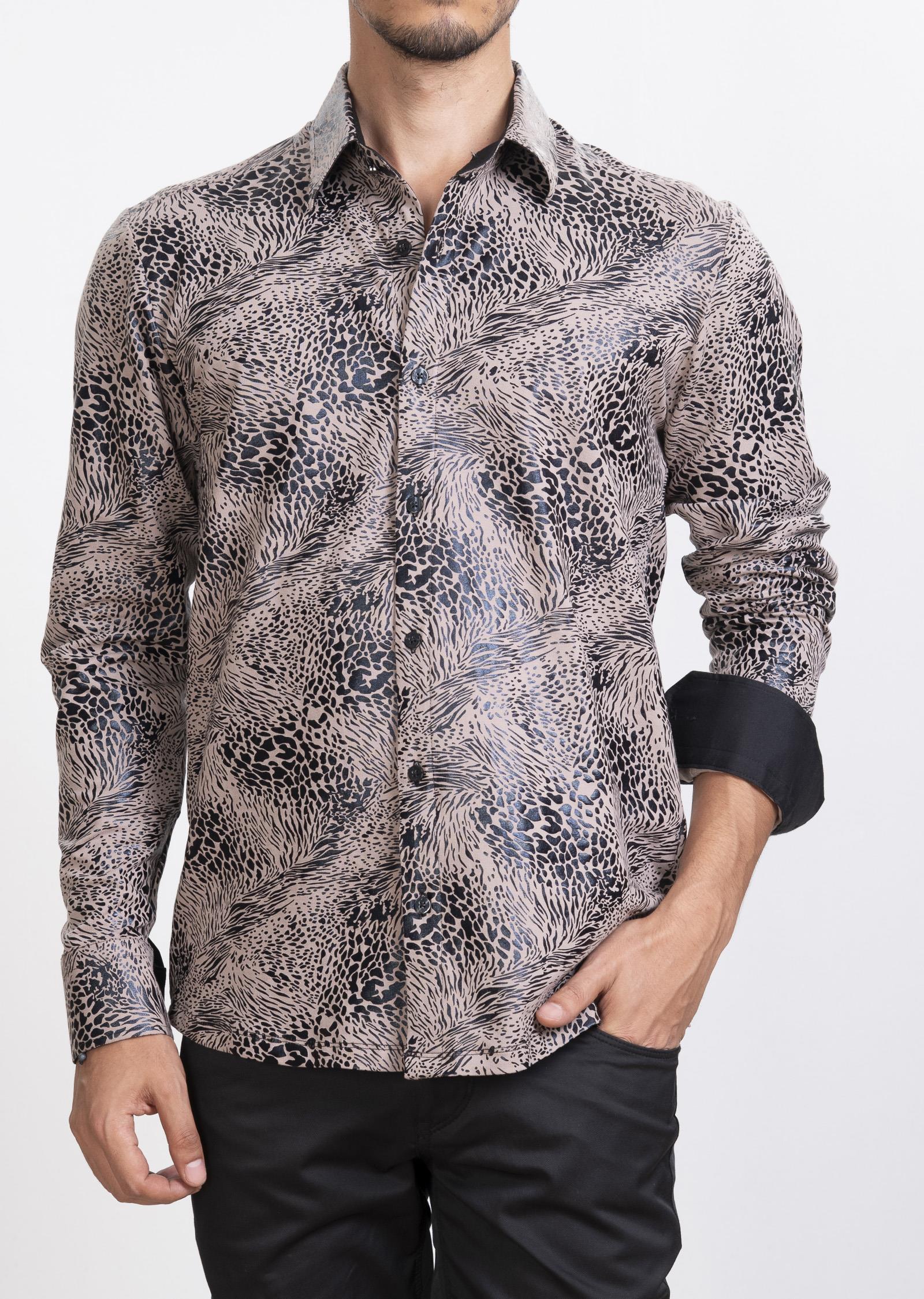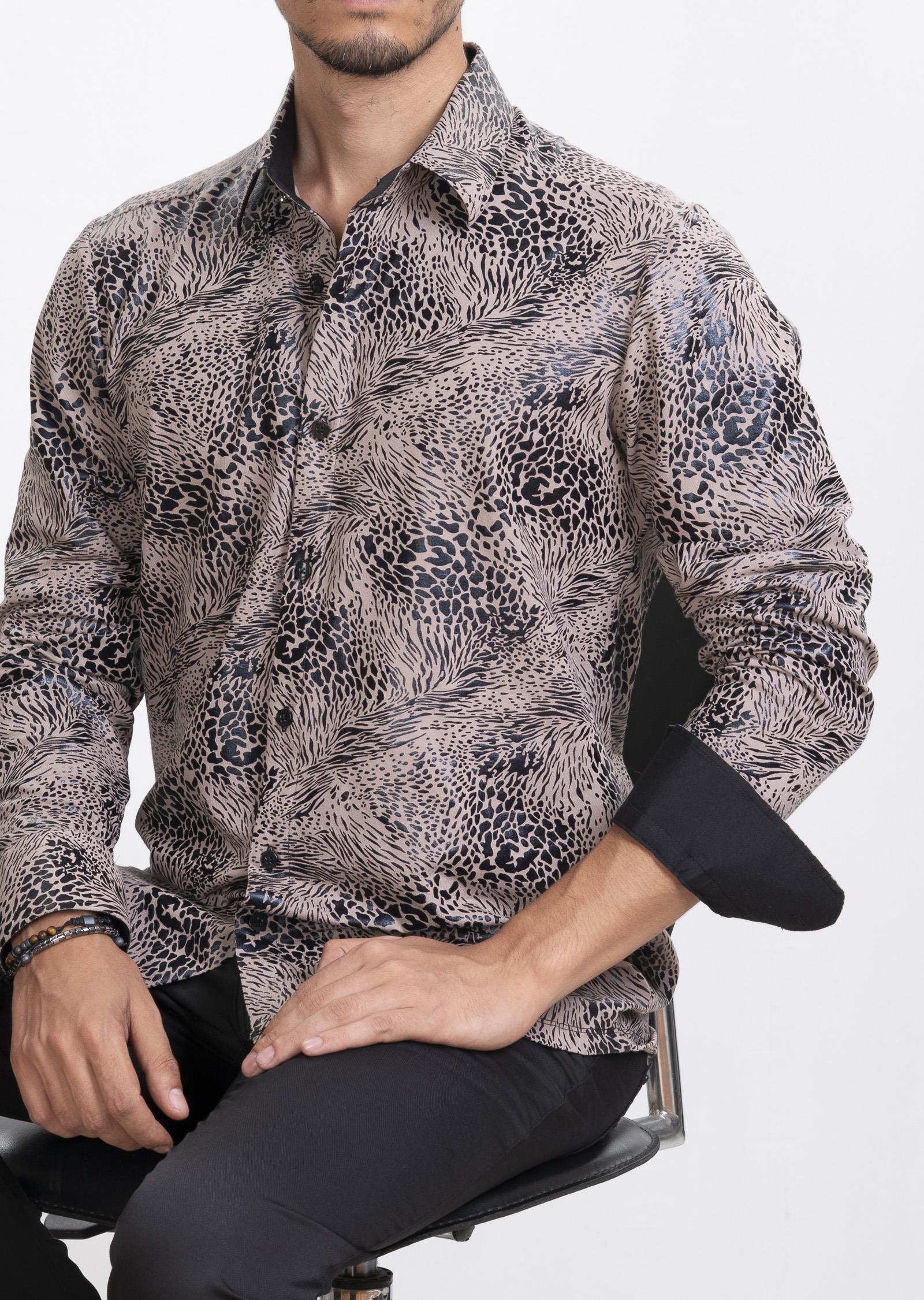 Bej Girdap Leopar Desenli Örme Gömlek (G-72131-3 04)