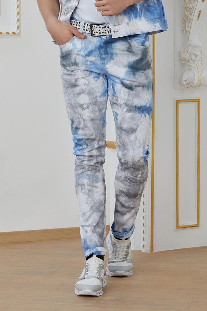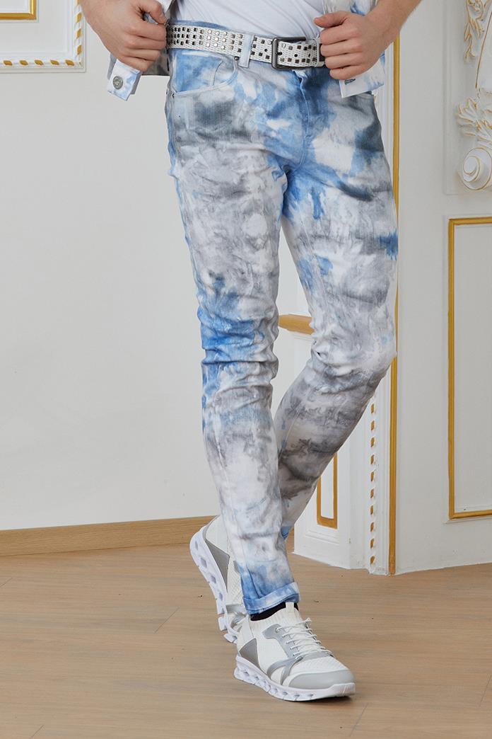 Beyaz-Mavi Batik Desenli Jean Pantolon (P-1567 0220)