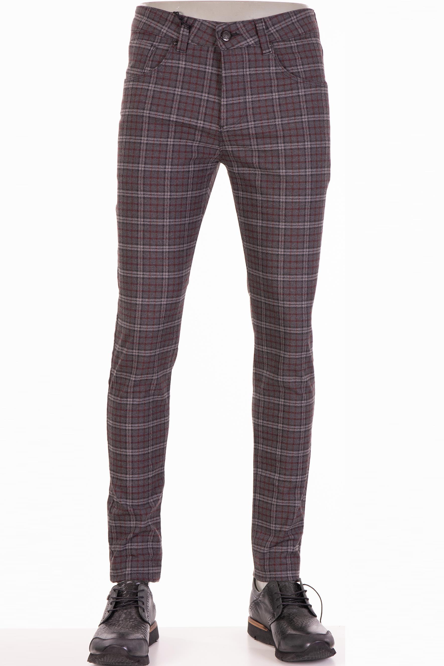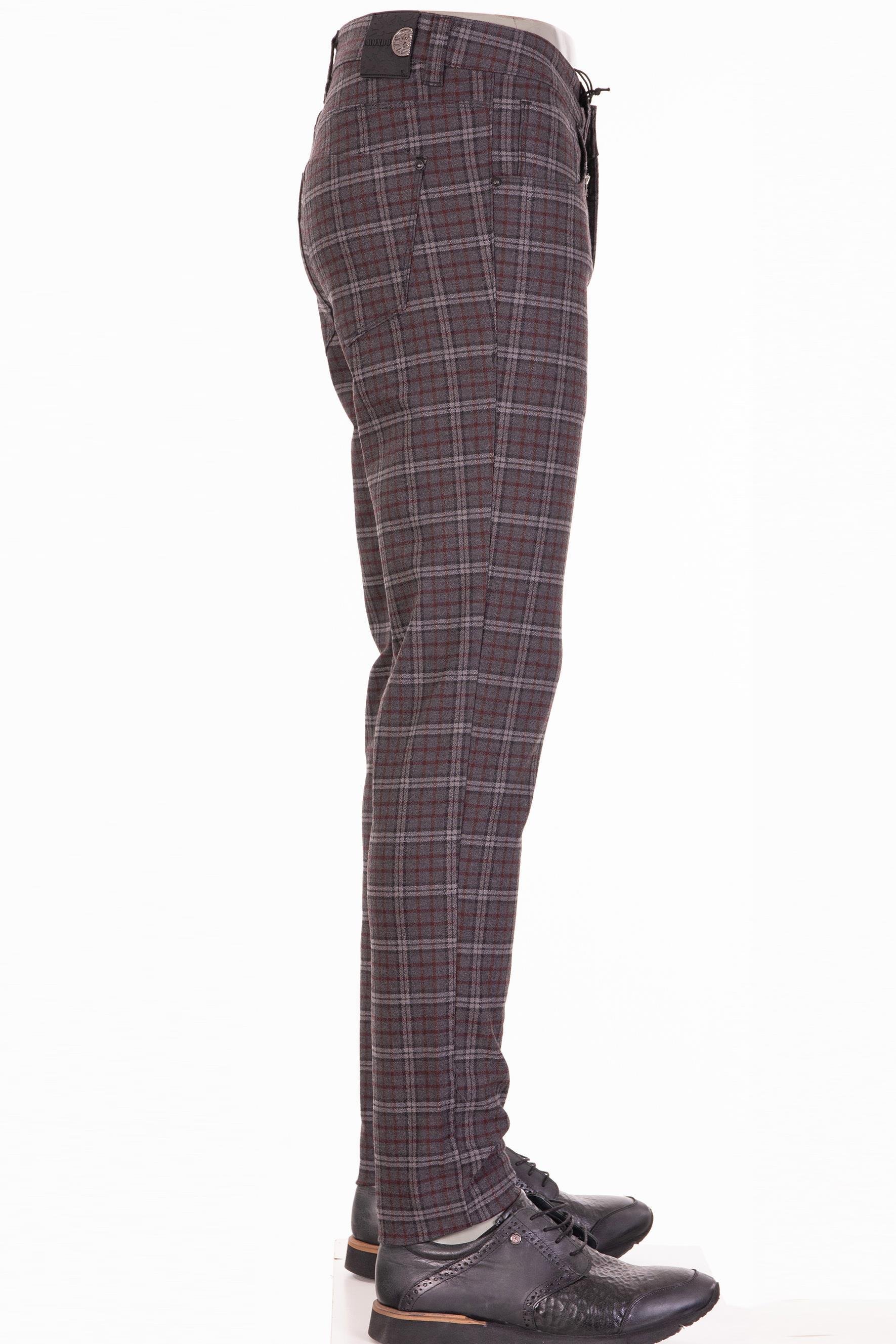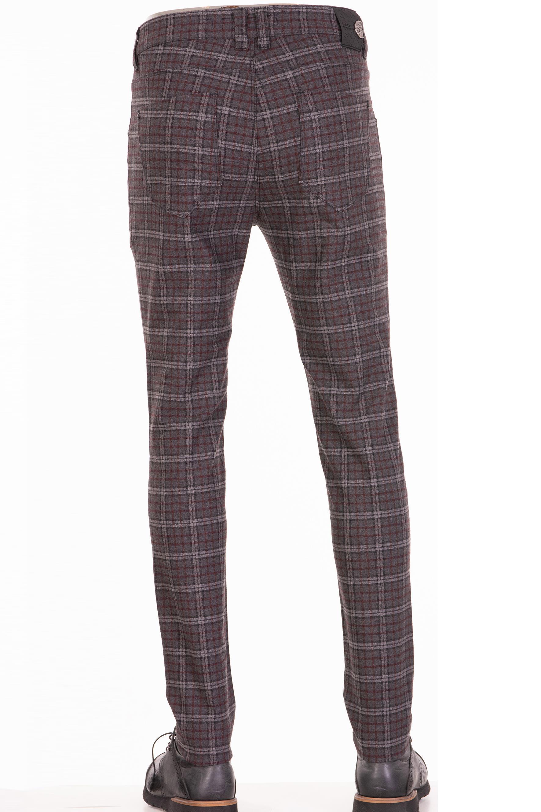 Bordo-Gri Kareli Pantolon (P-1554-3 0941)