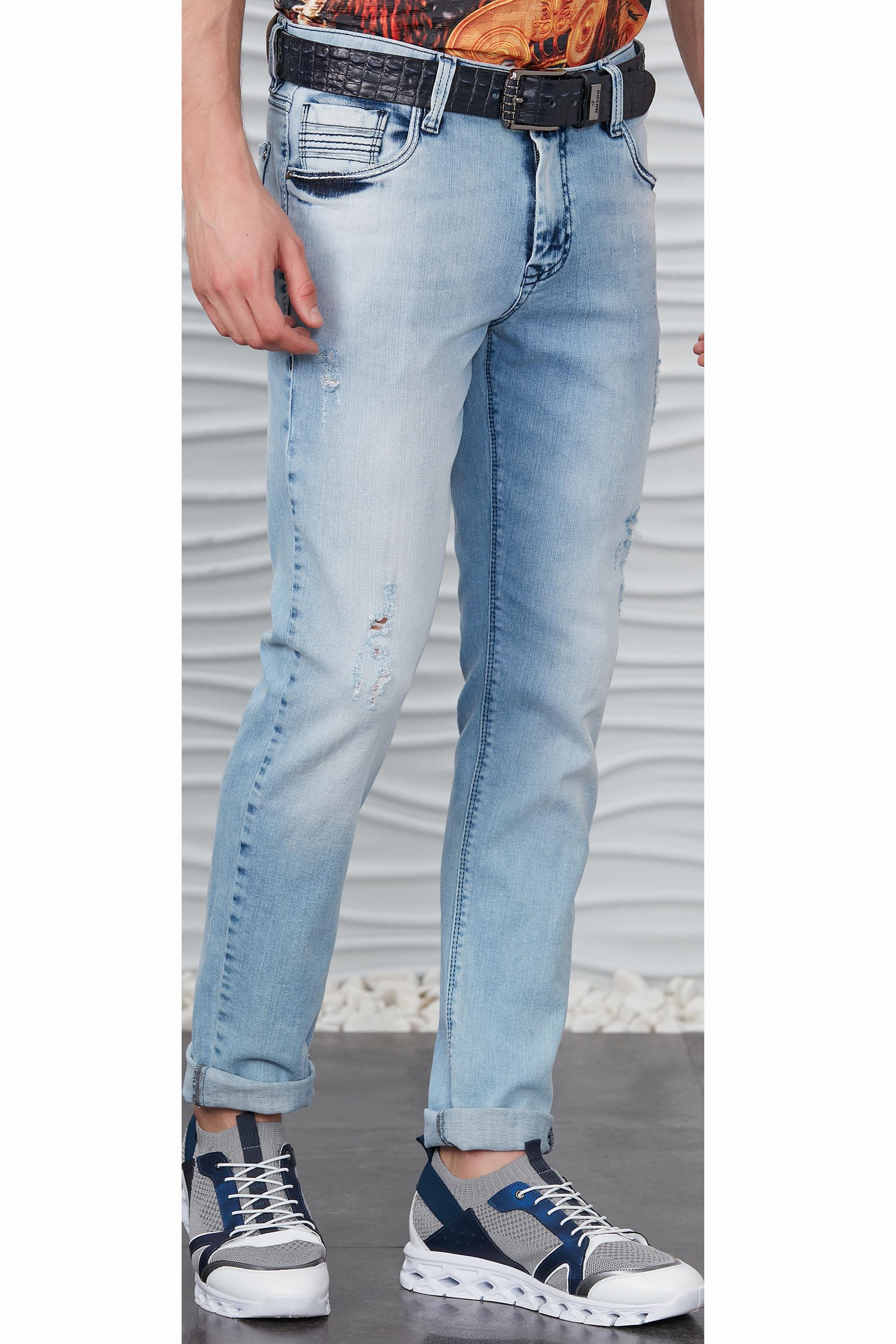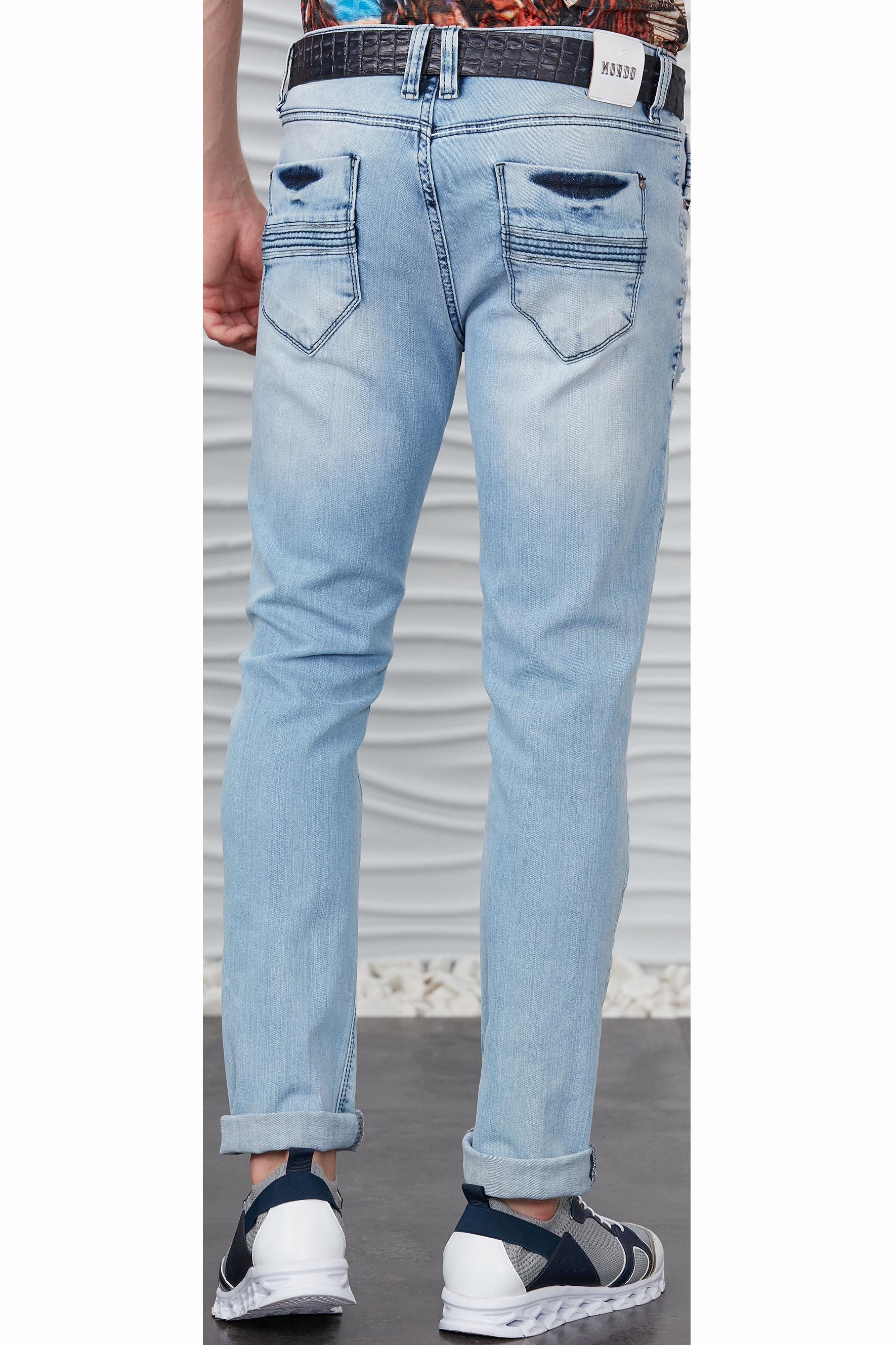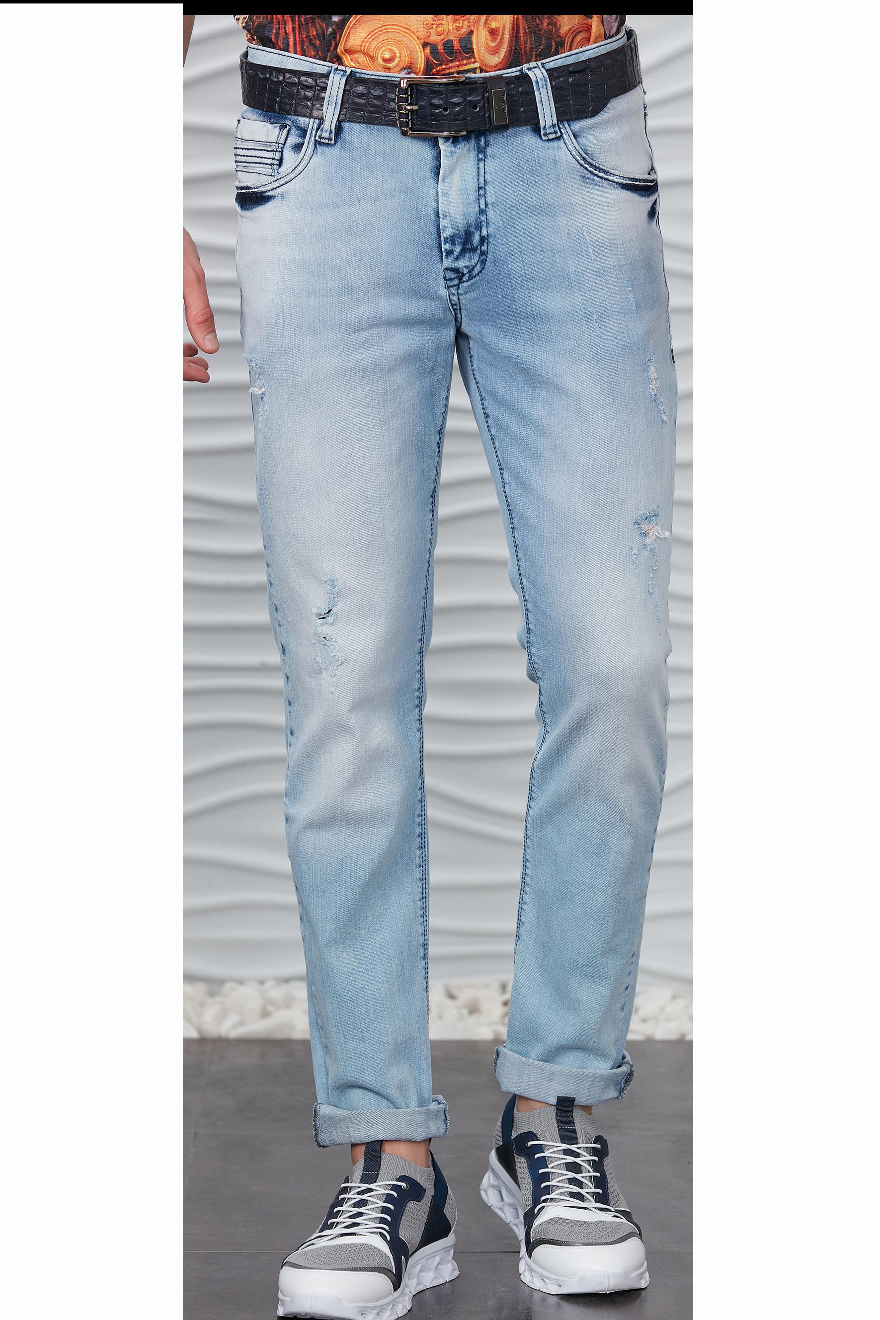 Buz Mavisi Taşlanmış Yırtık Jeans (P-1421 20 )