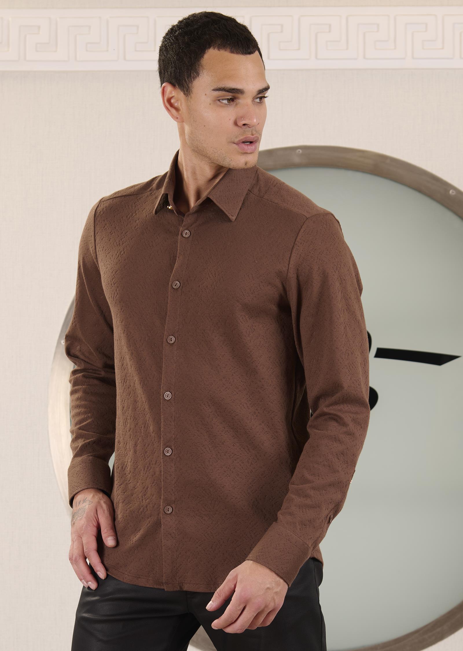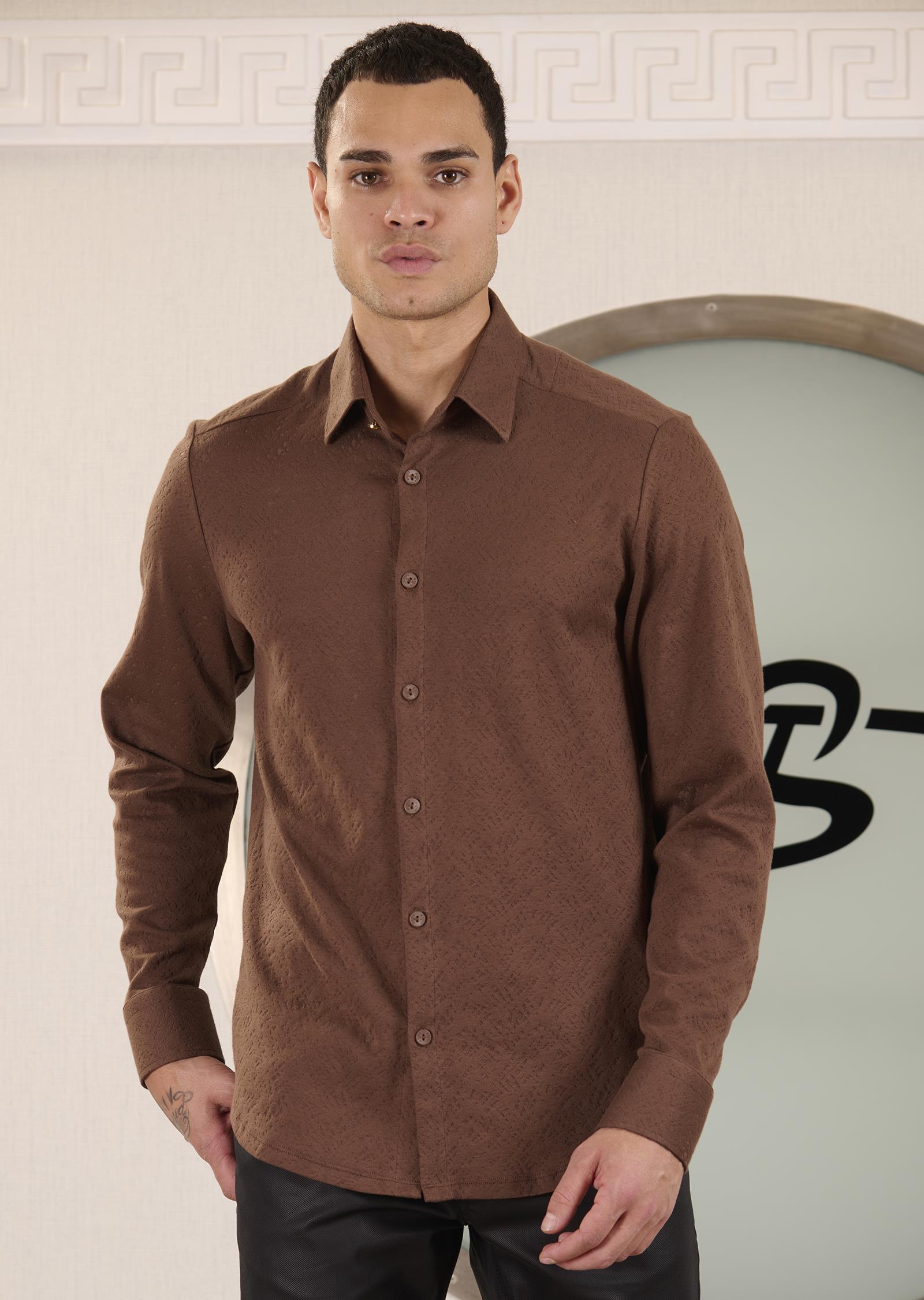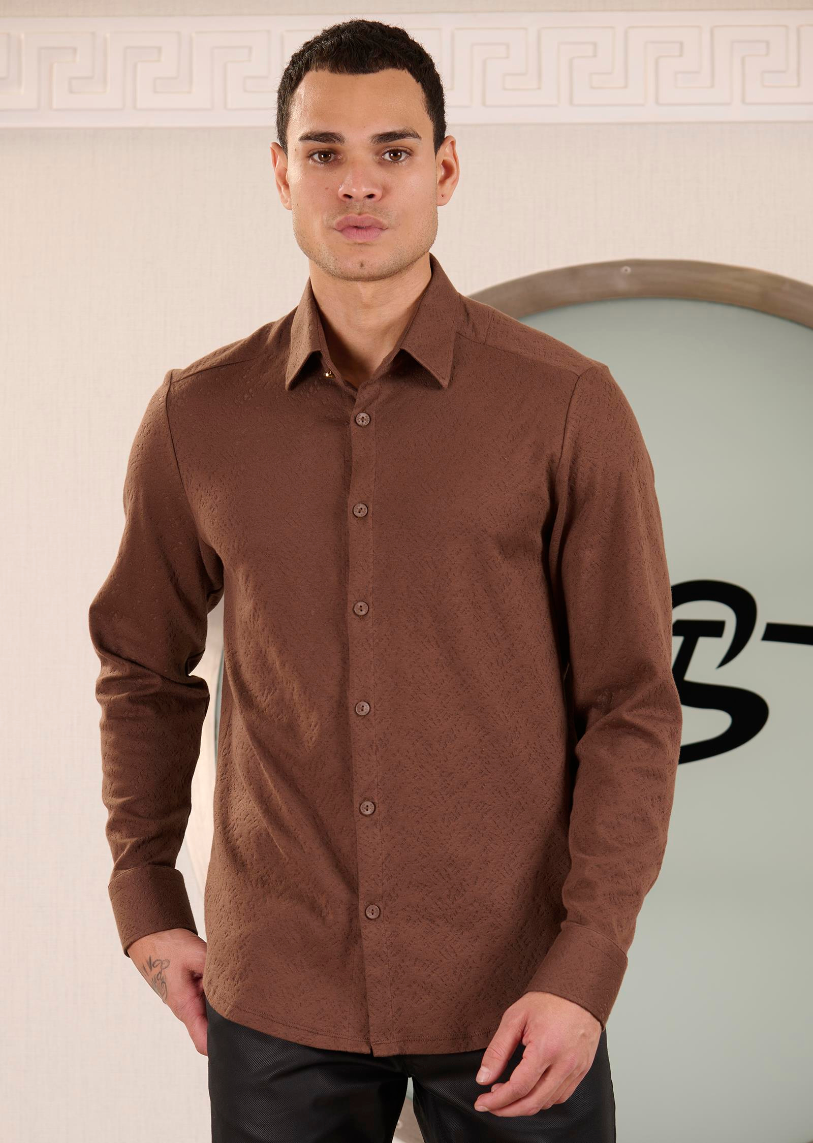 Kahve Dokulu Pamuklu Örme Gömlek (G-72481 10)