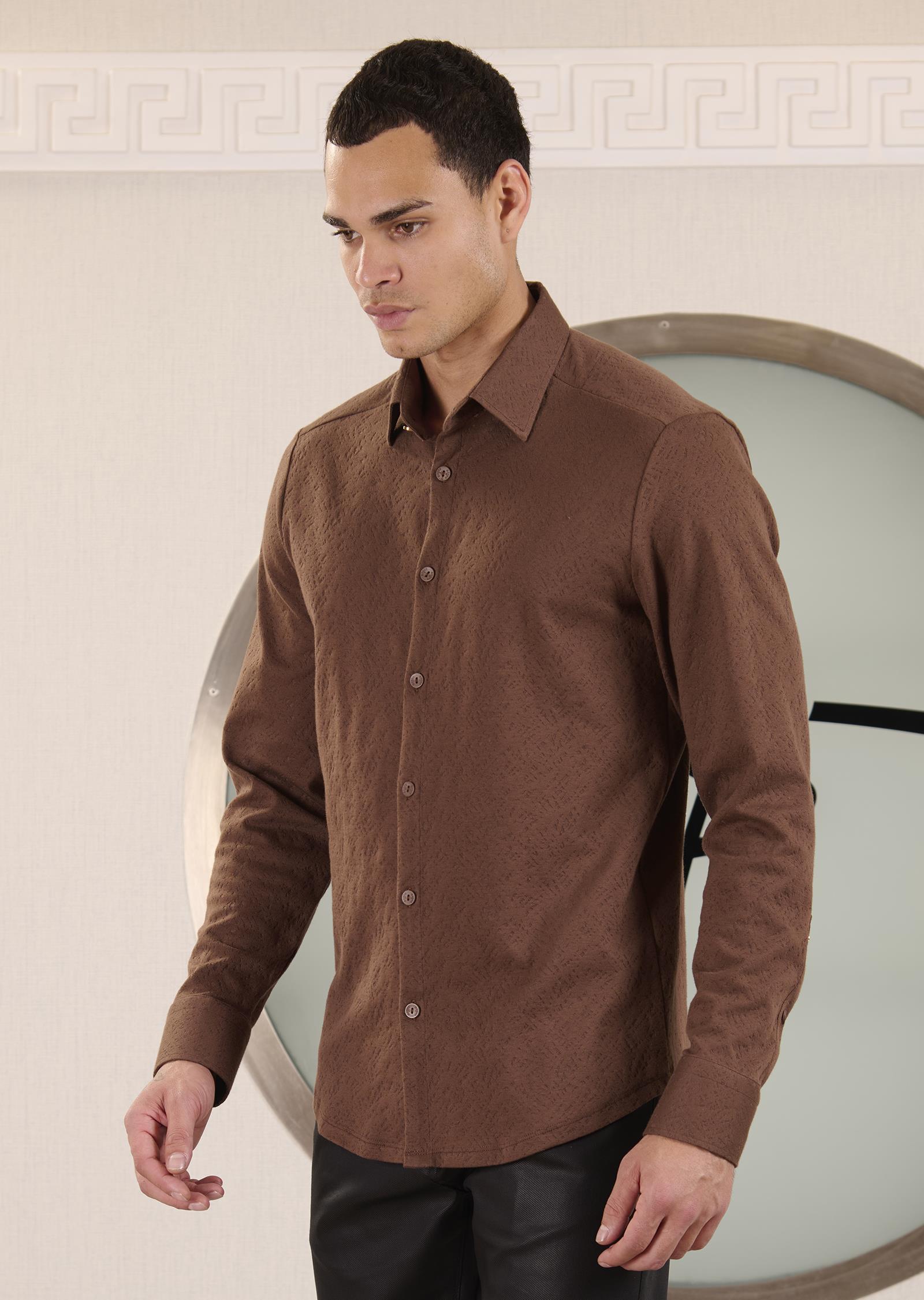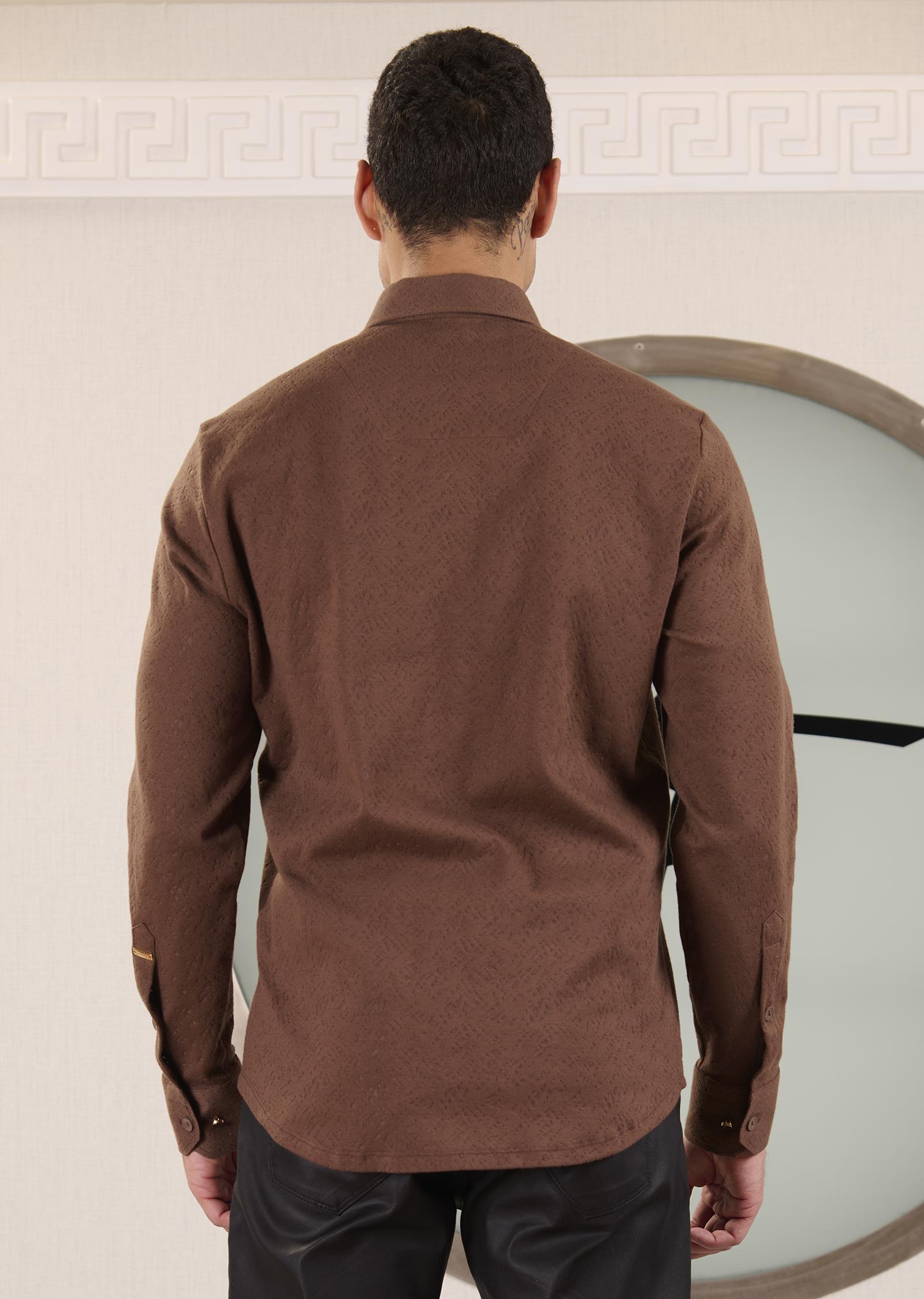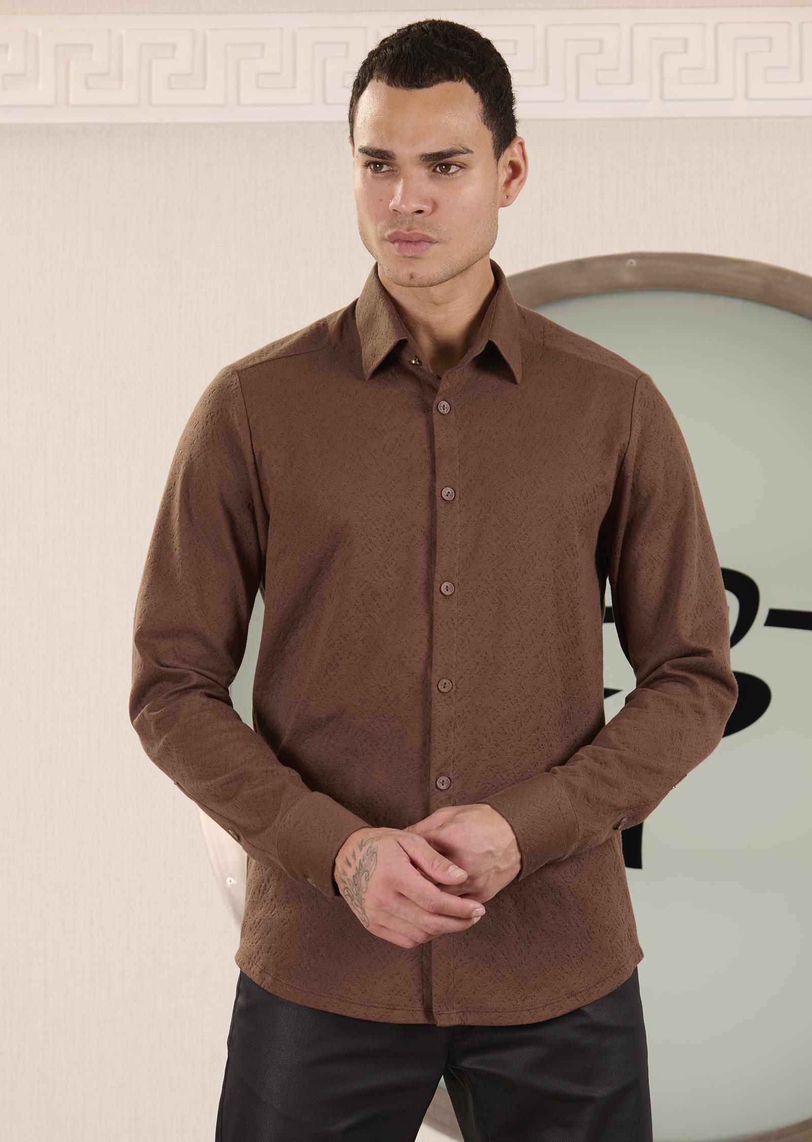 Kahve Dokulu Pamuklu Örme Gömlek (G-72481 10)