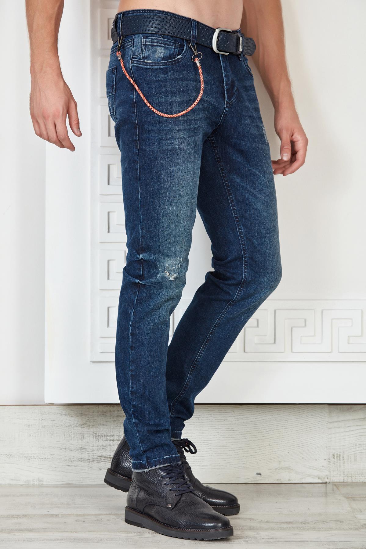 Lacivert Yıpratmalı Slim Fit Jean (P-1297)