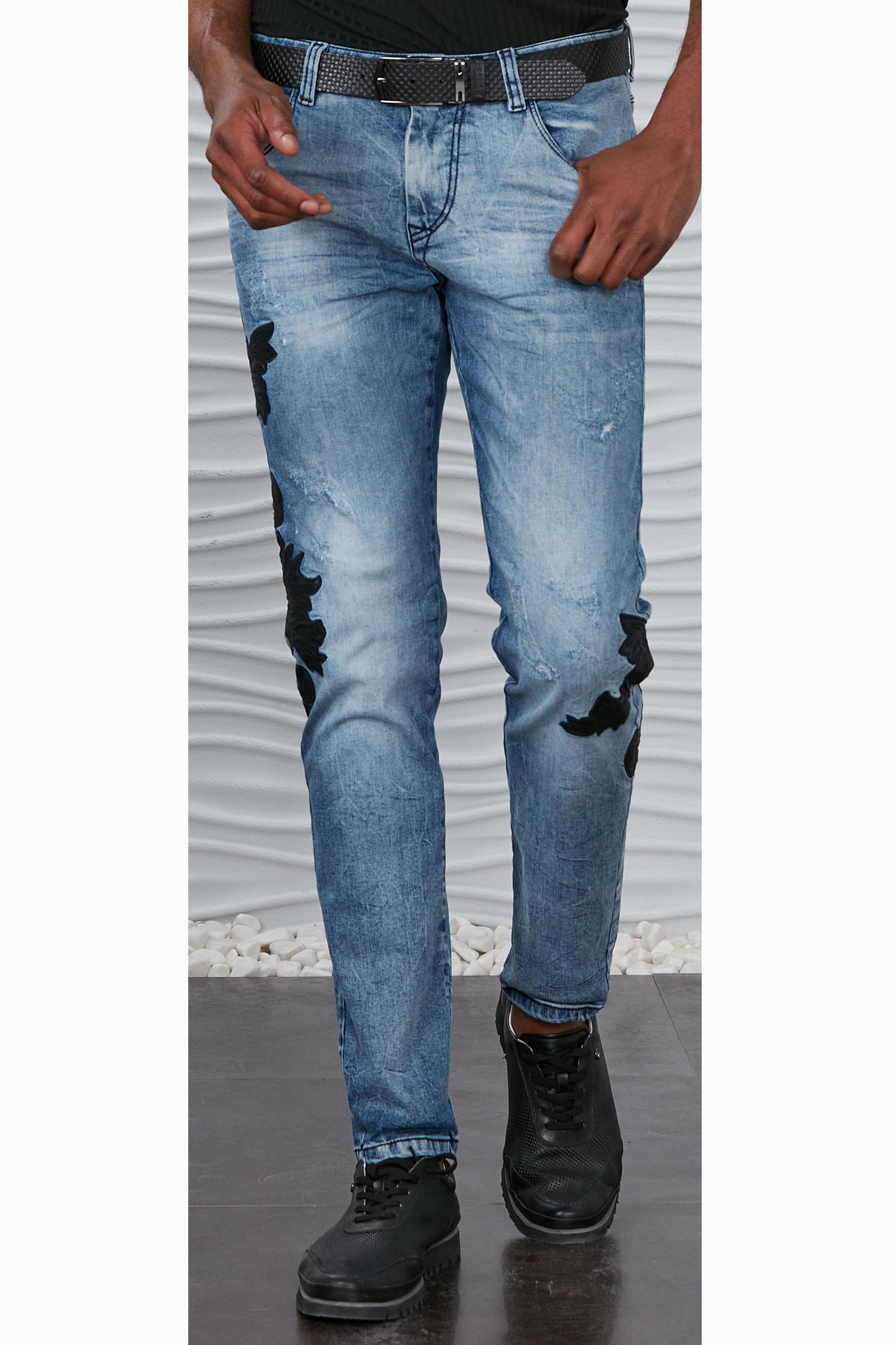 Siyah Deri Motifli Jean Pantolon (P-1325-1 27)