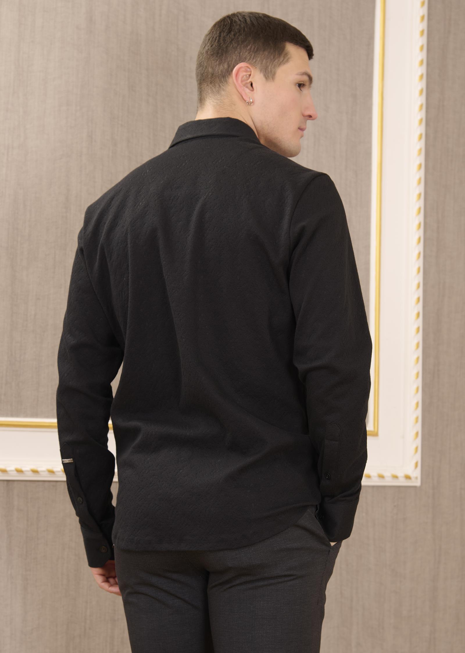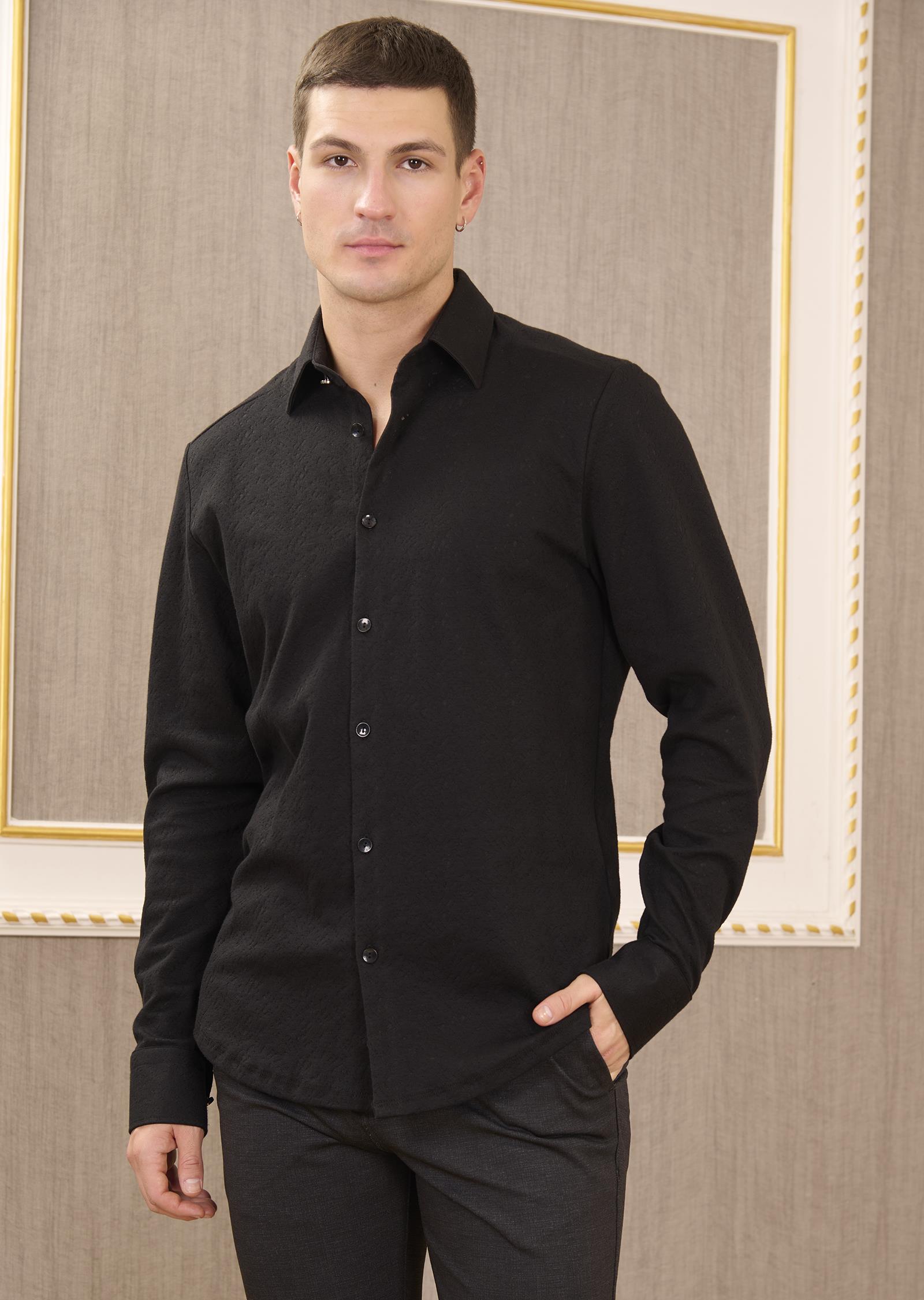 Siyah Dokulu Pamuklu Örme Gömlek (G-72481 01)