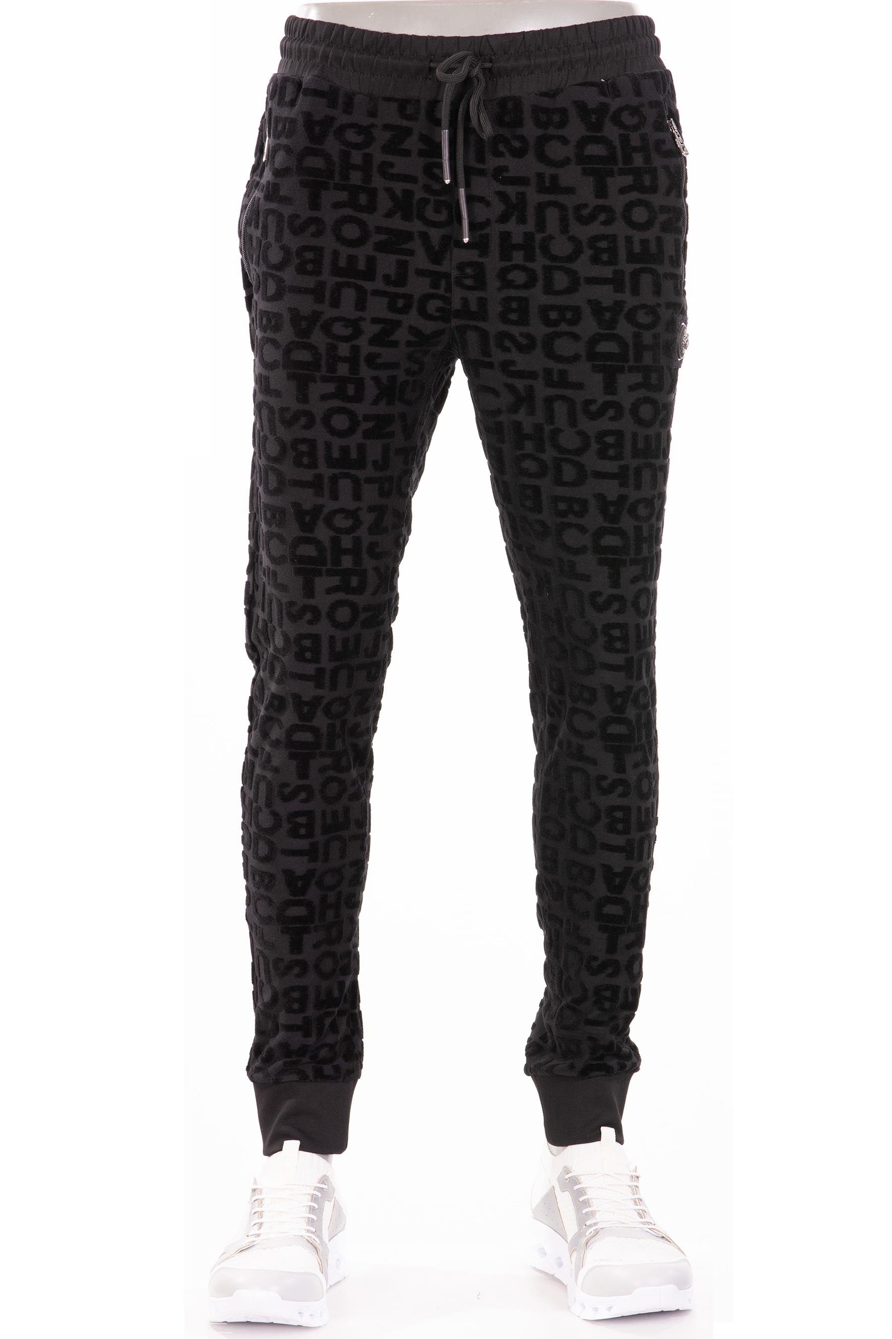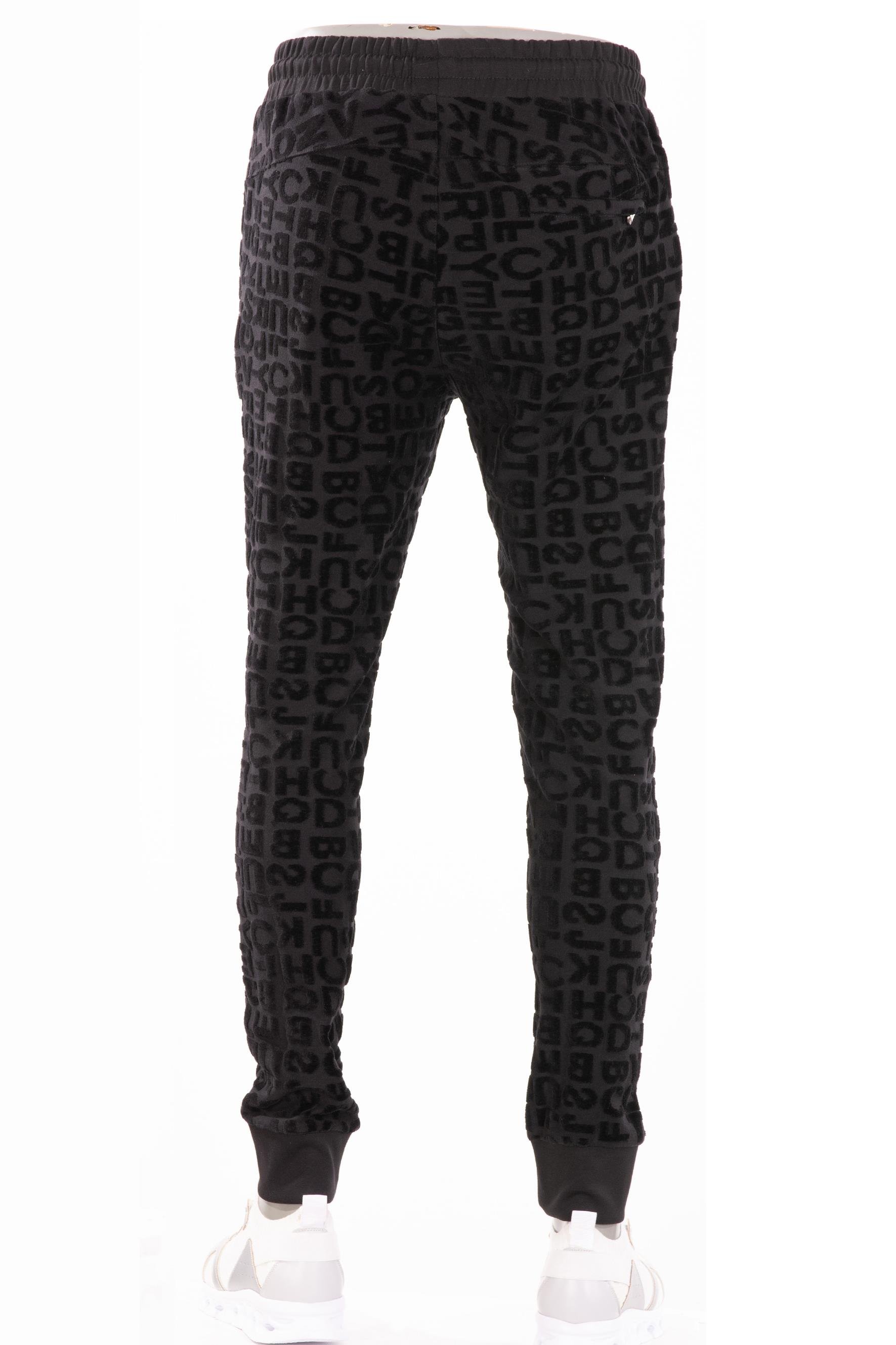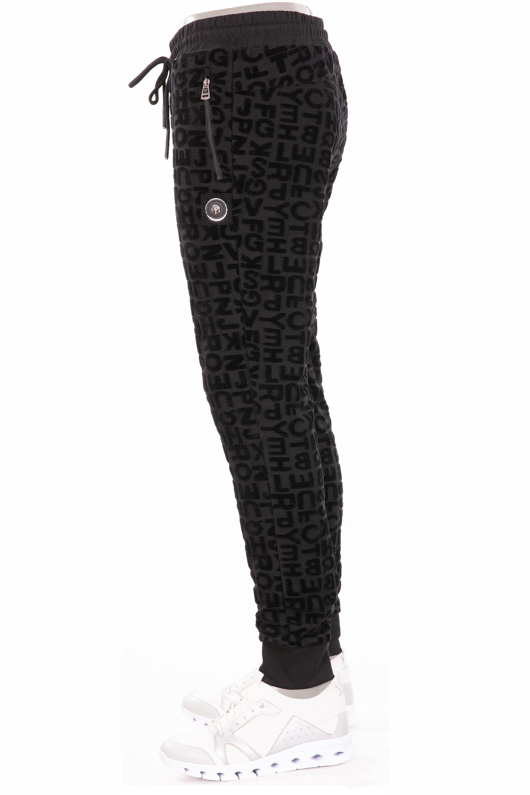 Siyah Kadife Dokulu Harf Desenli Jogger Pantolon (E-206 01)