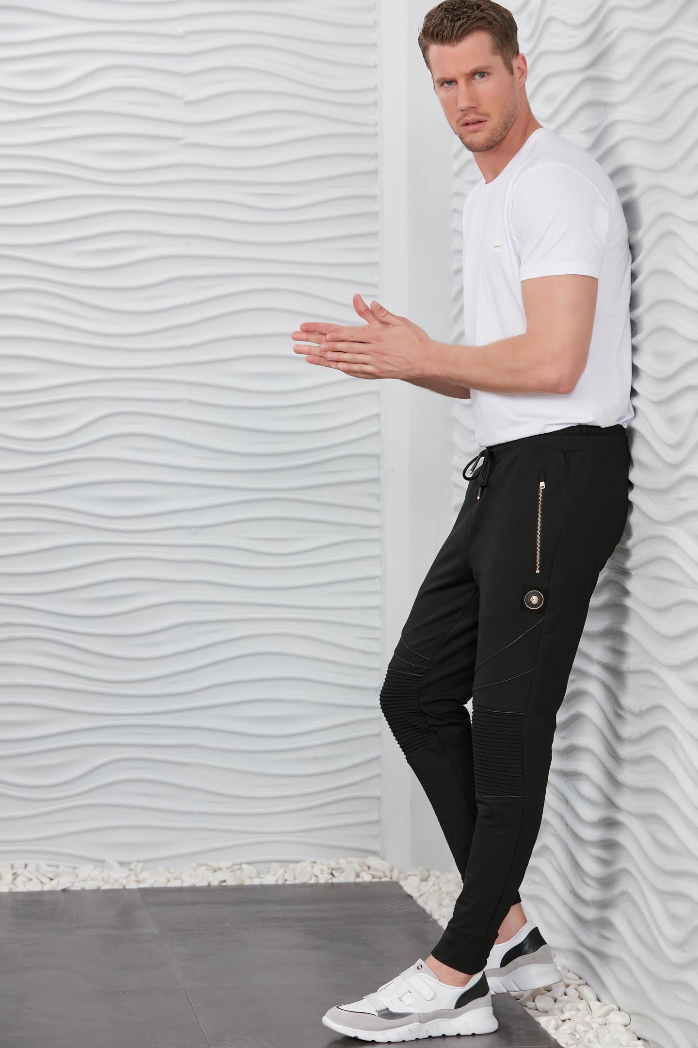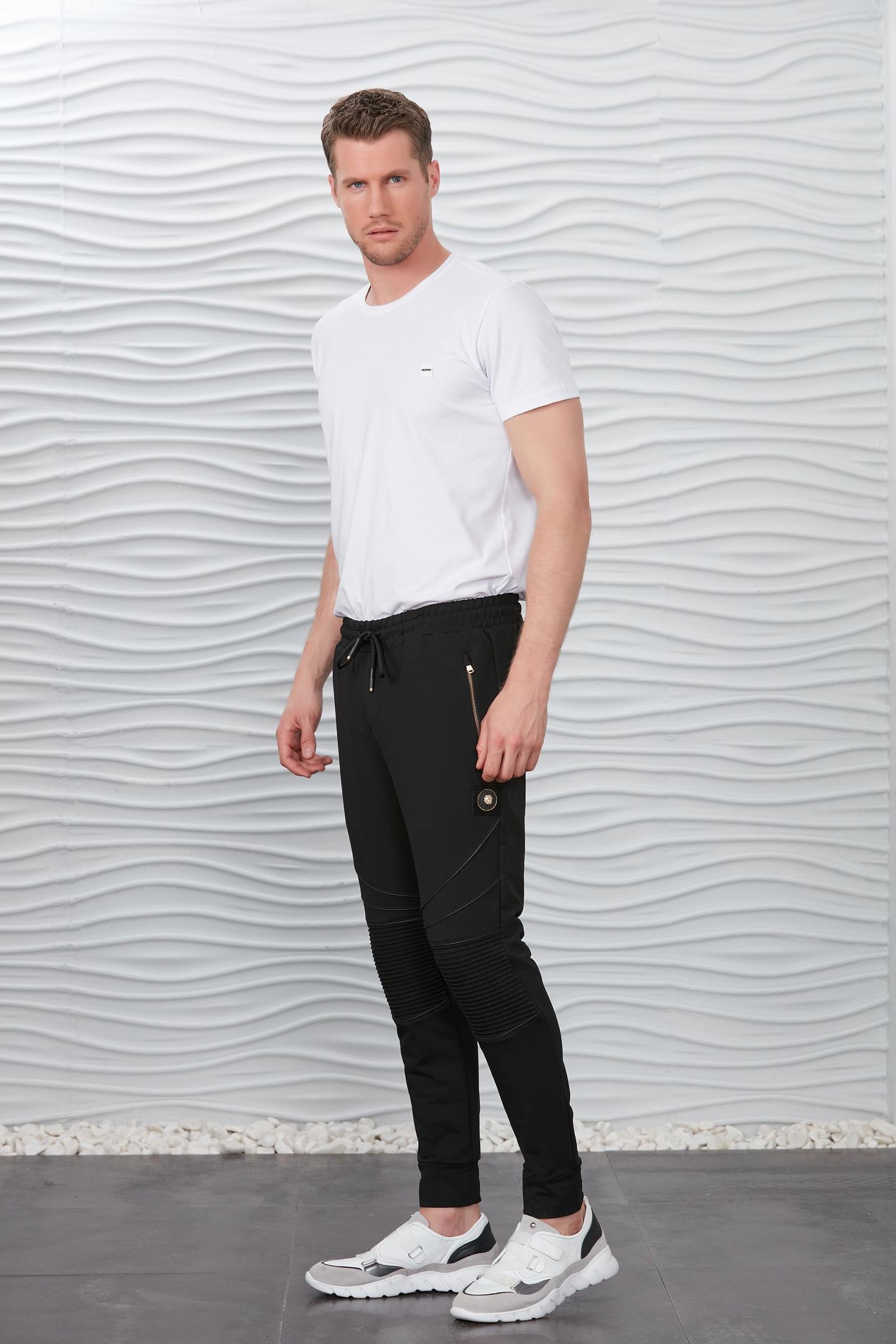 Siyah Nervürlü Cebi Fermuarlı Jogger Pantolon (E-185)