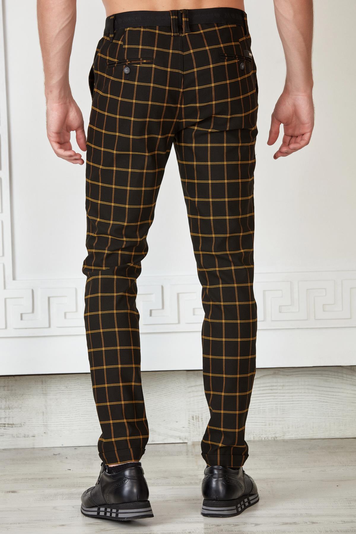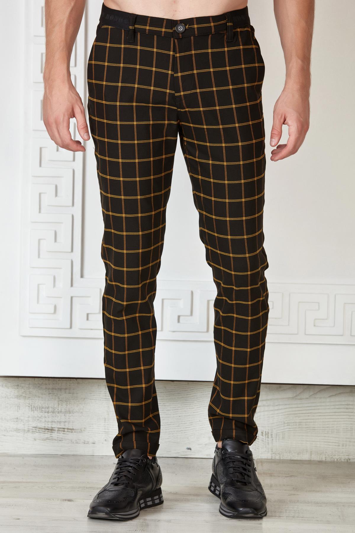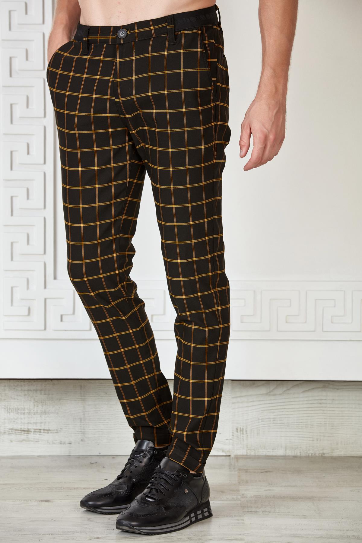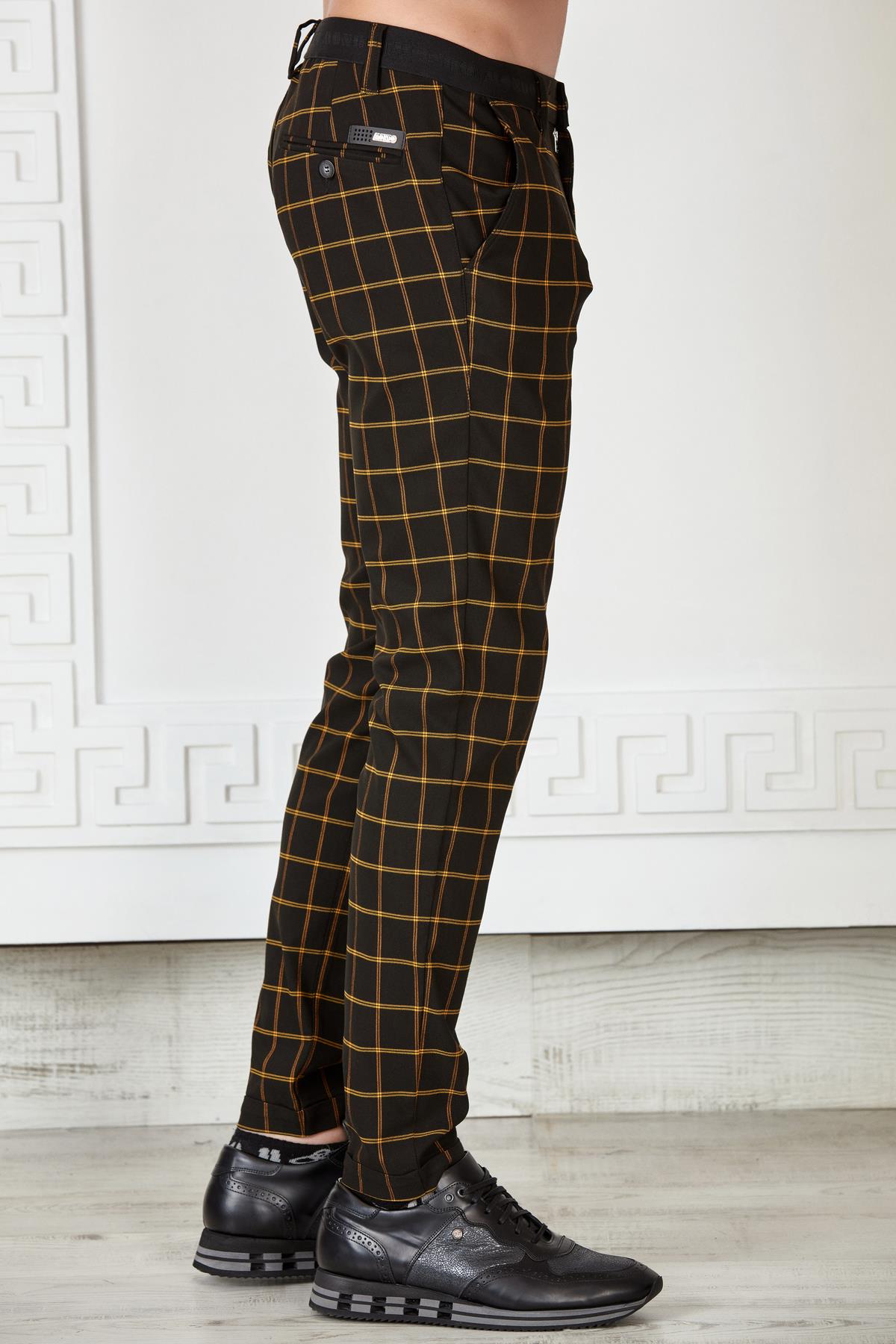 Siyah-Saks Kareli Beli Lastikli Slim Fit Pantolon (P-1118-4)