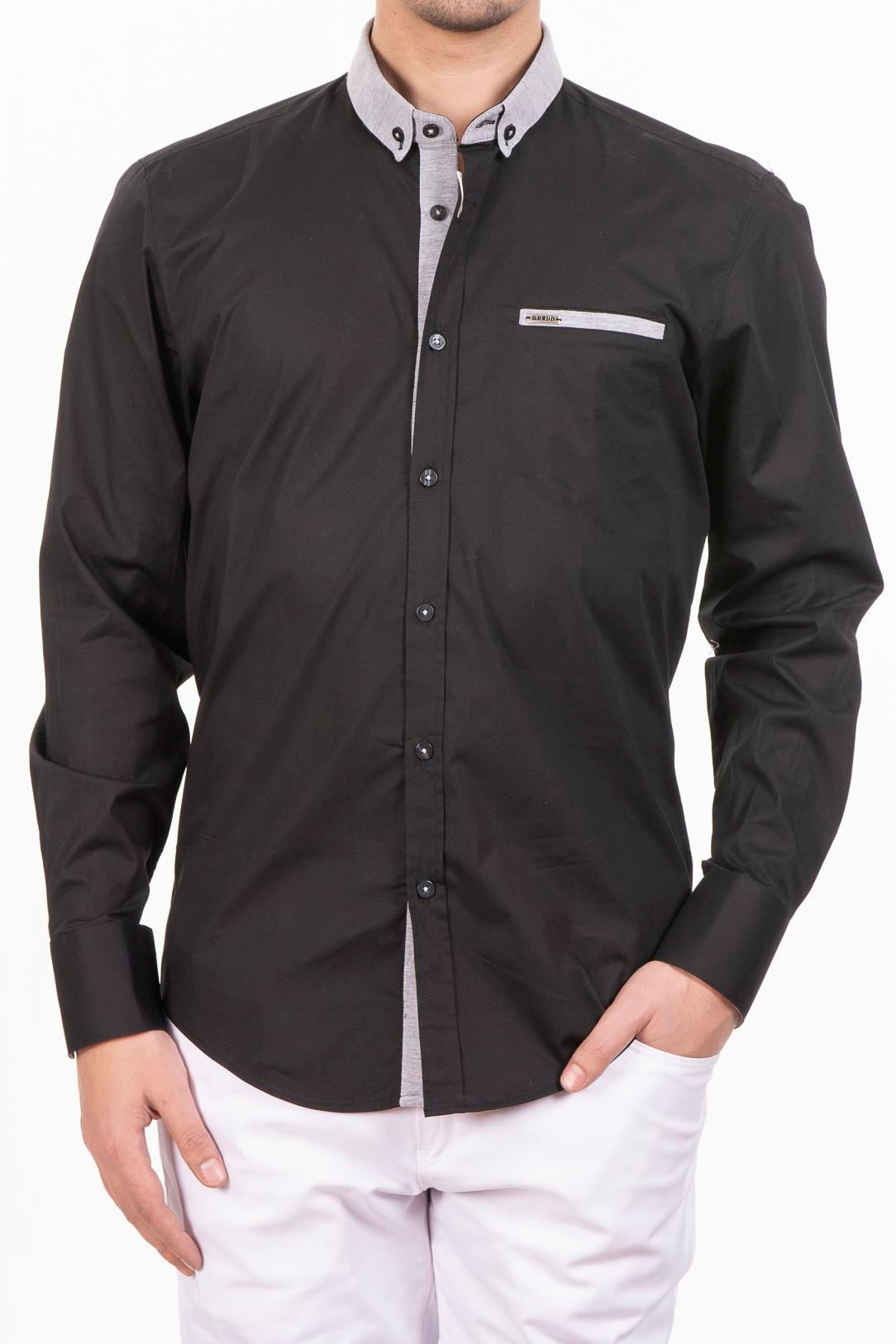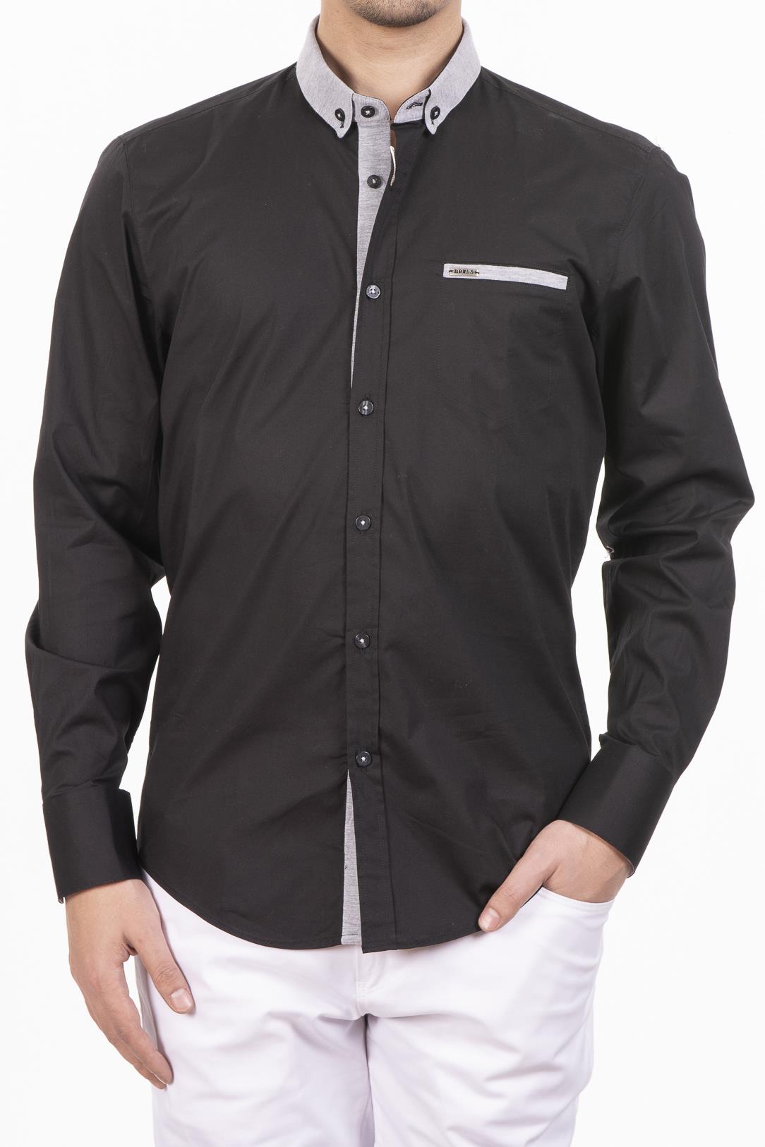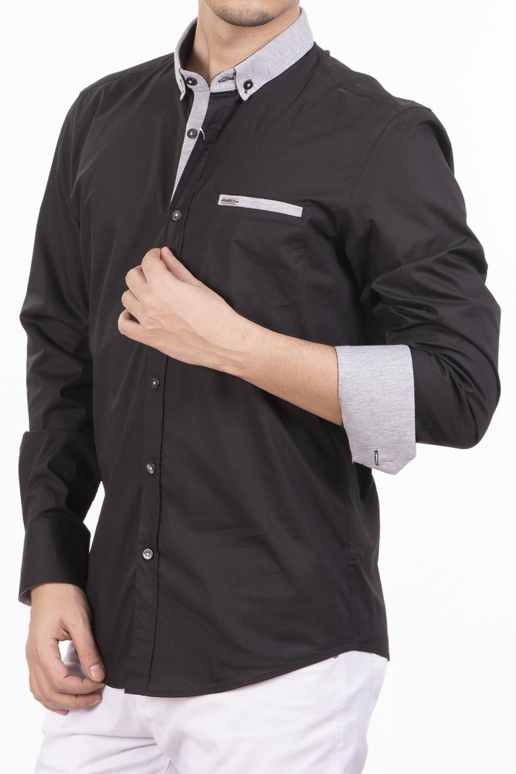 Siyah Yakası Gri Penye Gömlek (G-7249 01)