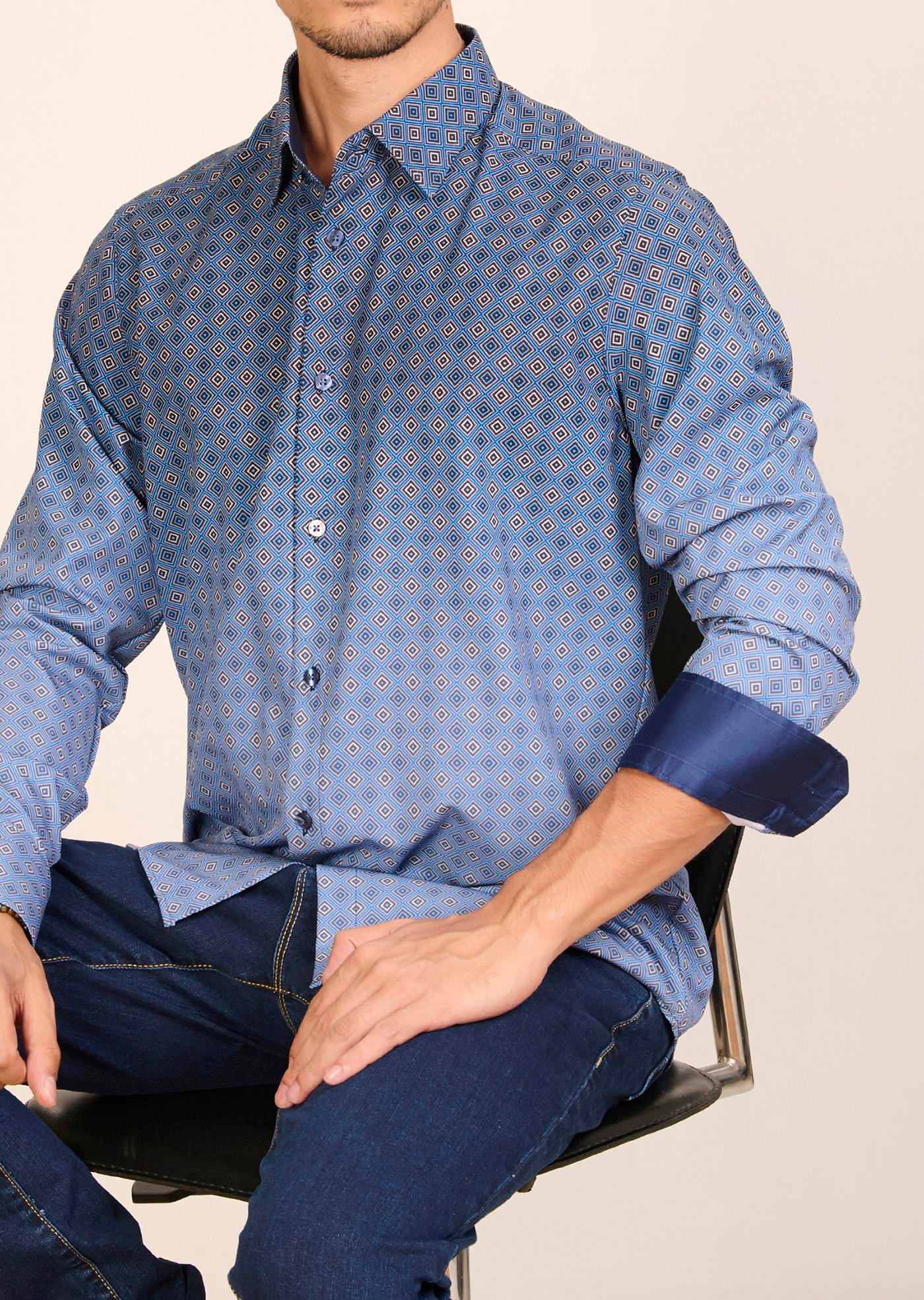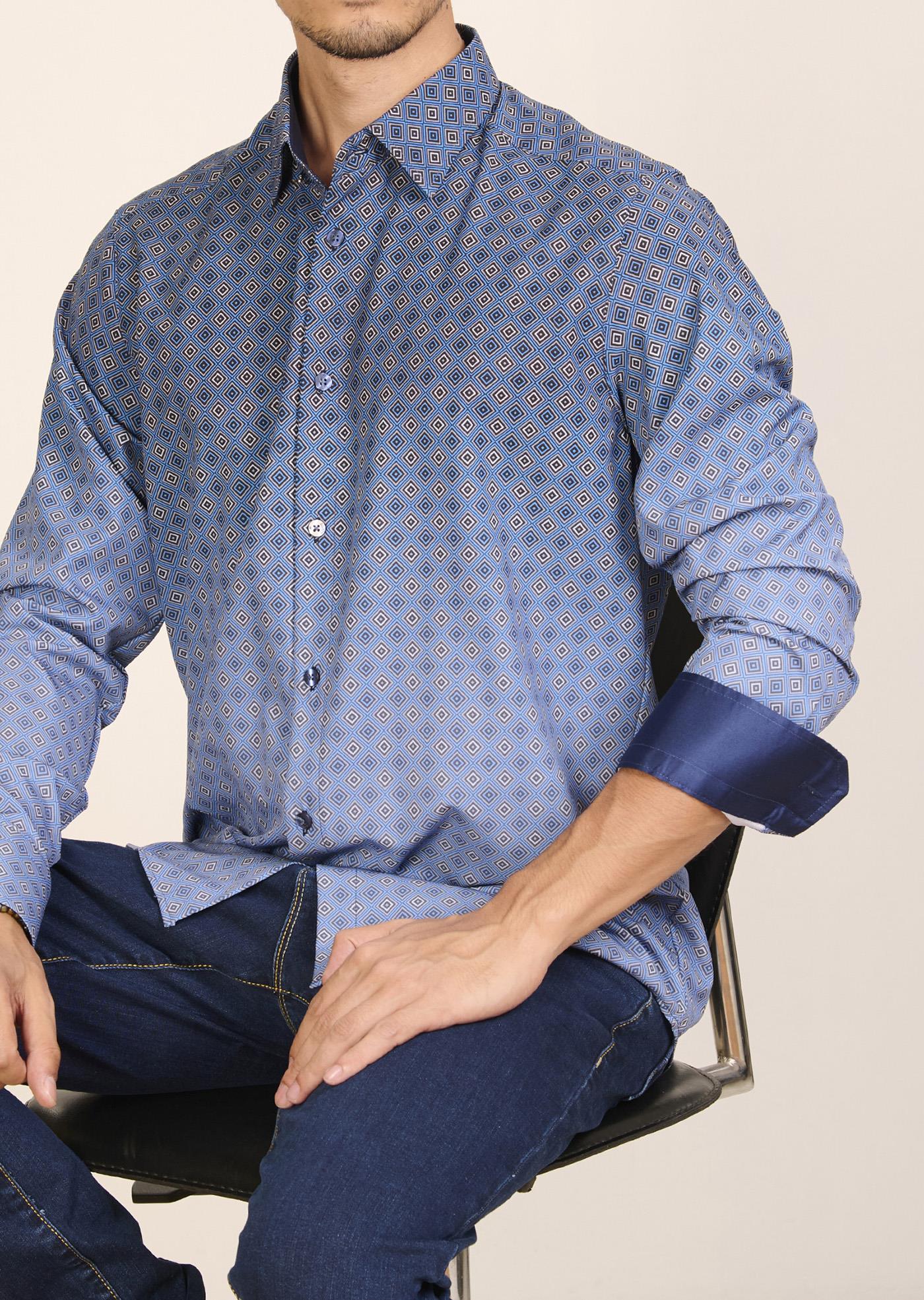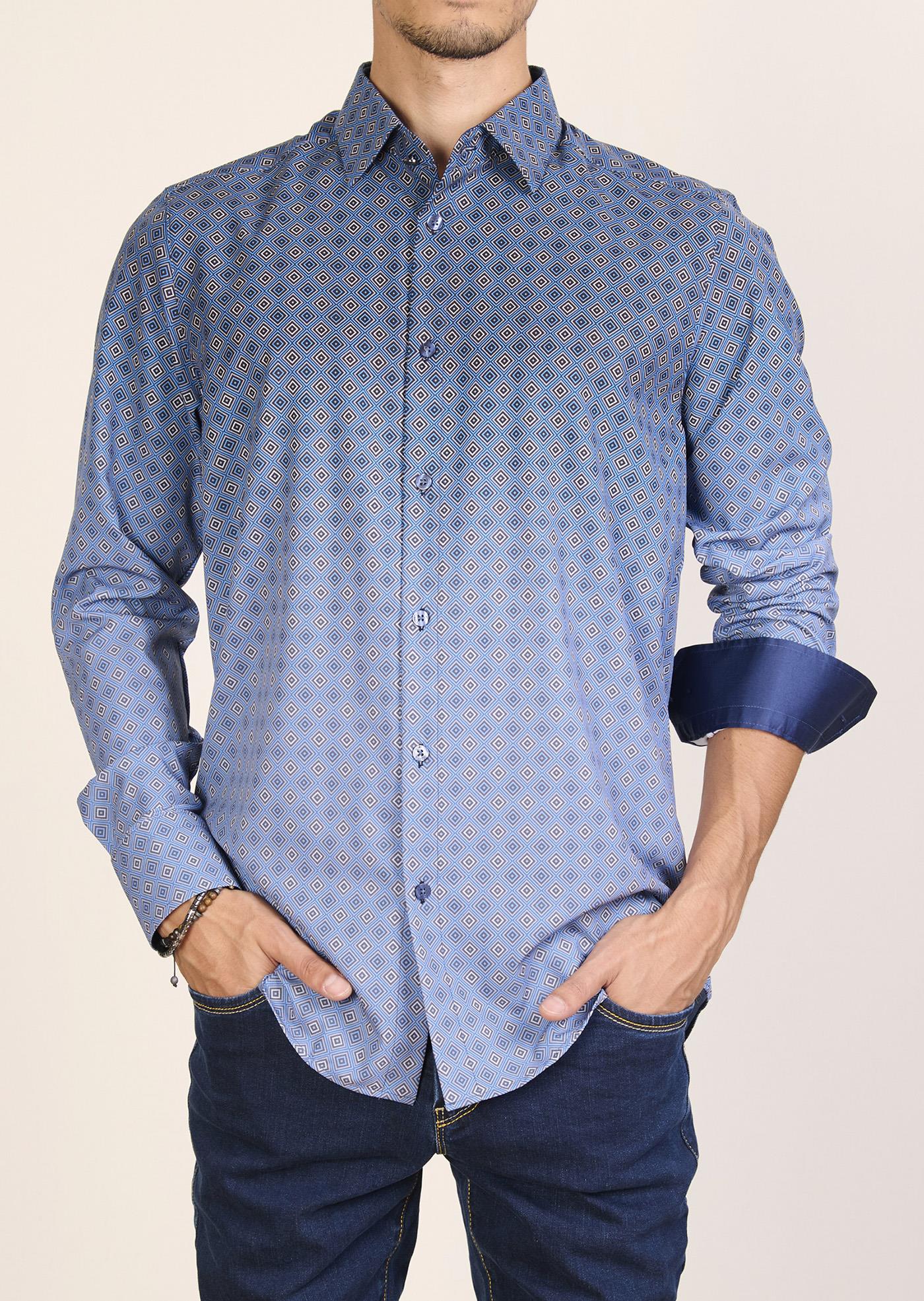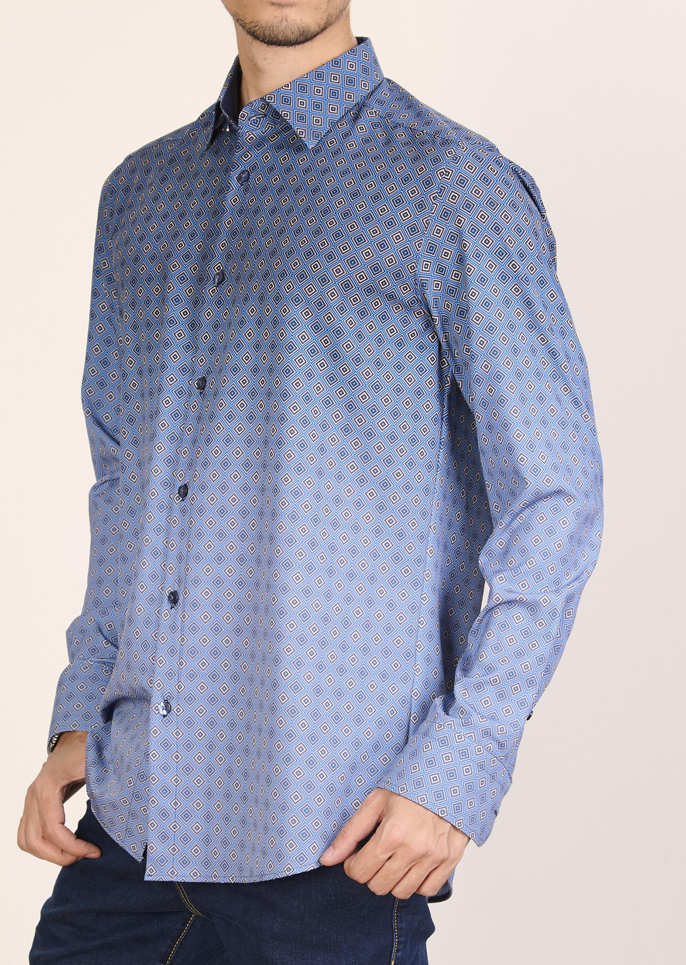 Desenli Renk Geçişli Mavi Gömlek (G-72176-6 2046)