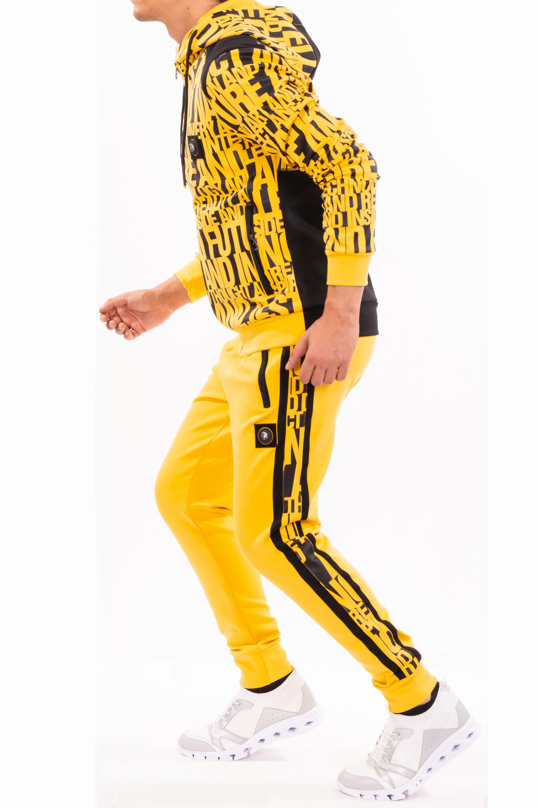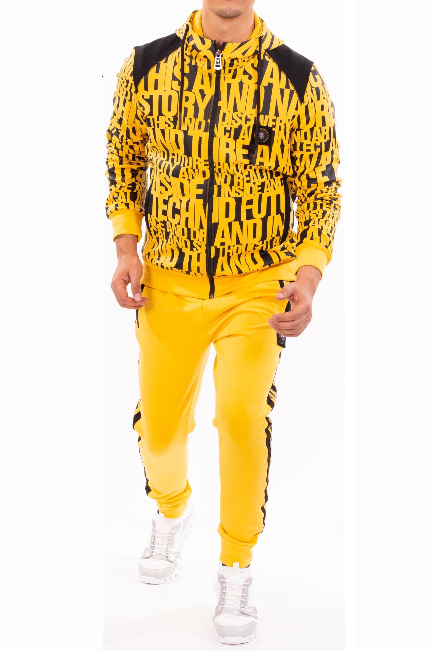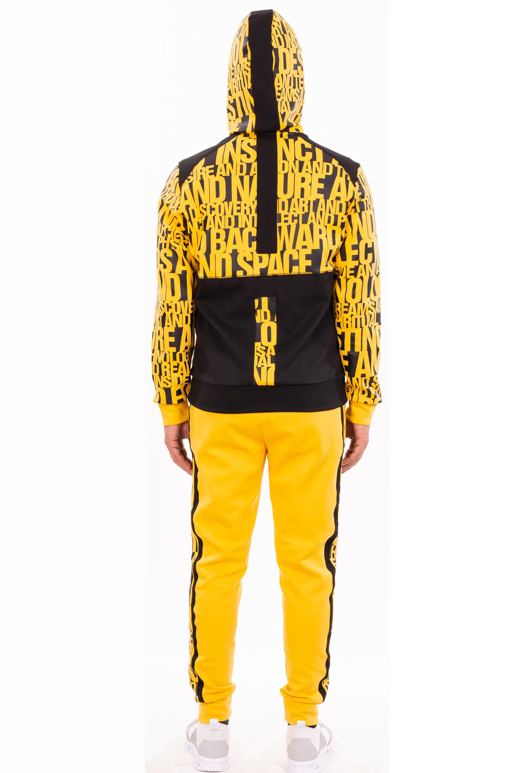 Sarı Dijital Harf Baskılı Kapüşonlu Jogging Takımı (S-90832 1601)