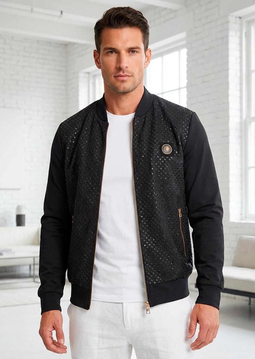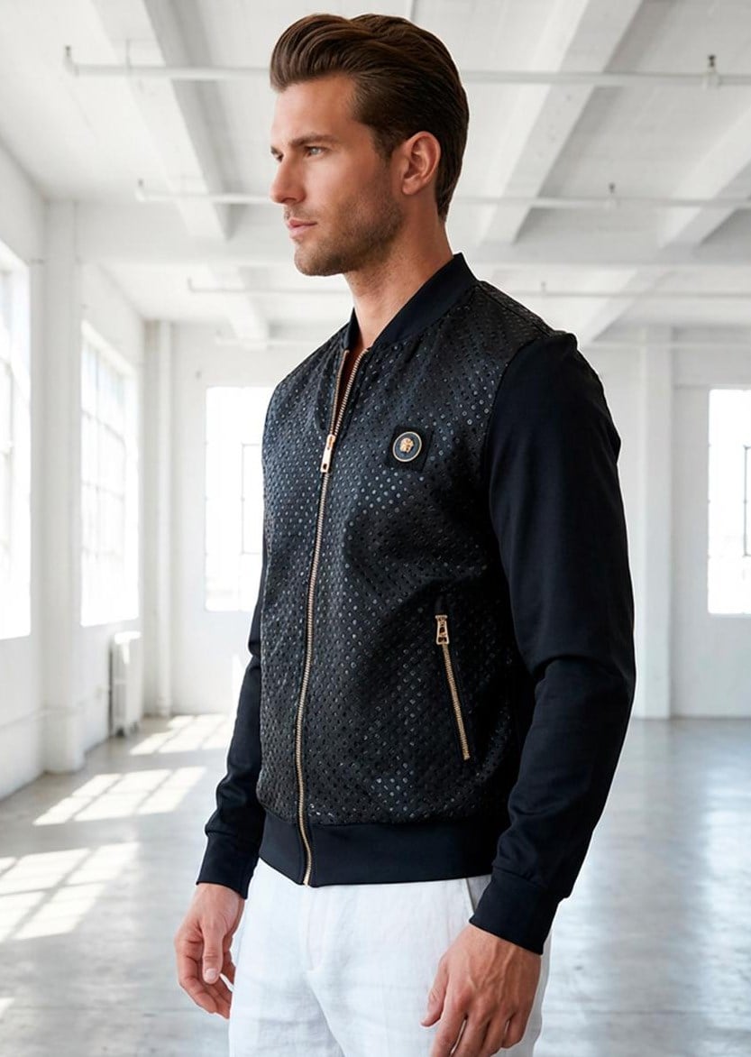Siyah Parlak Pullu Bomber Mont (M-4312 01)