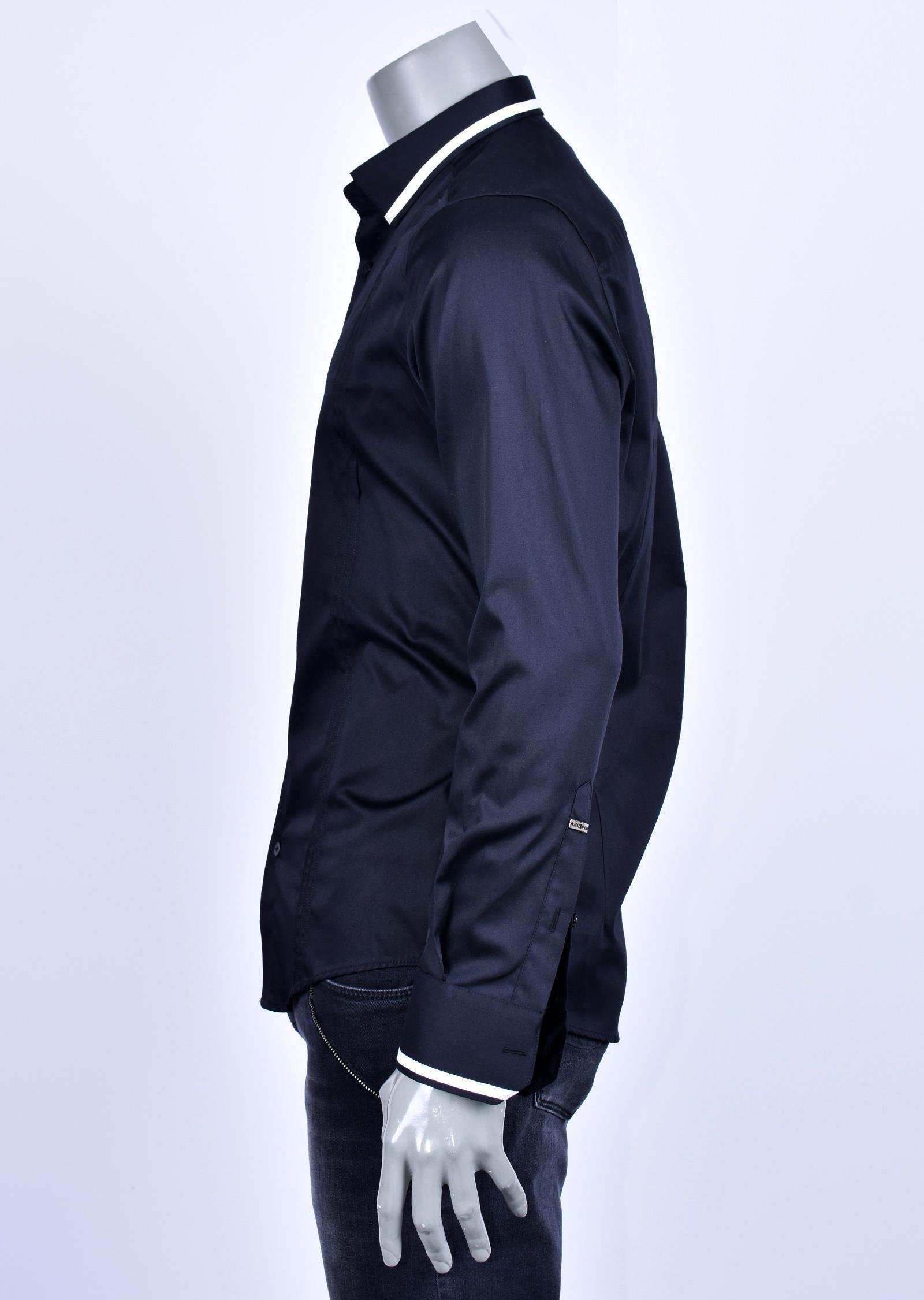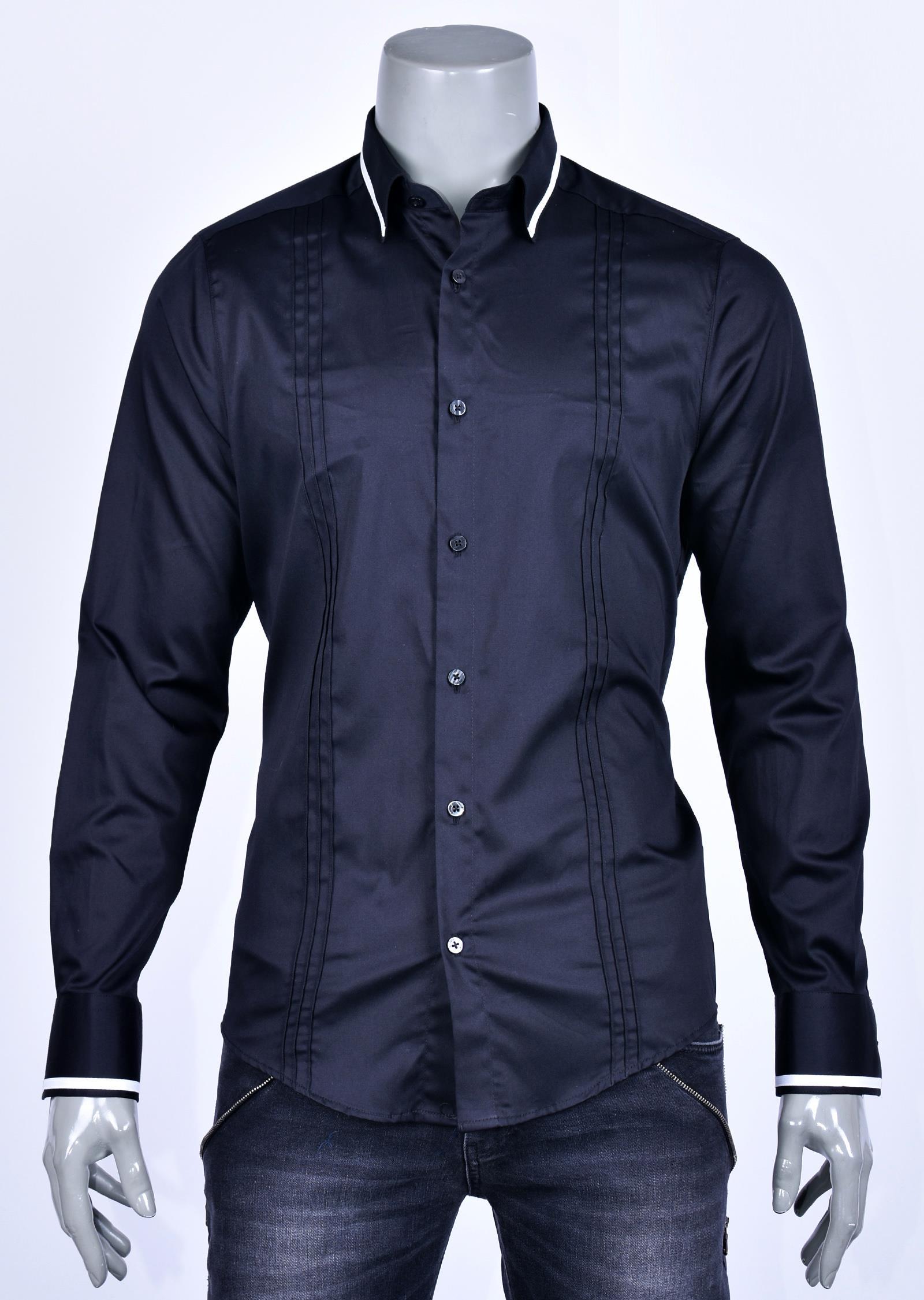 Siyah Yakası Beyaz Şeritli Uzun Kol Gömlek (G-7973 01)