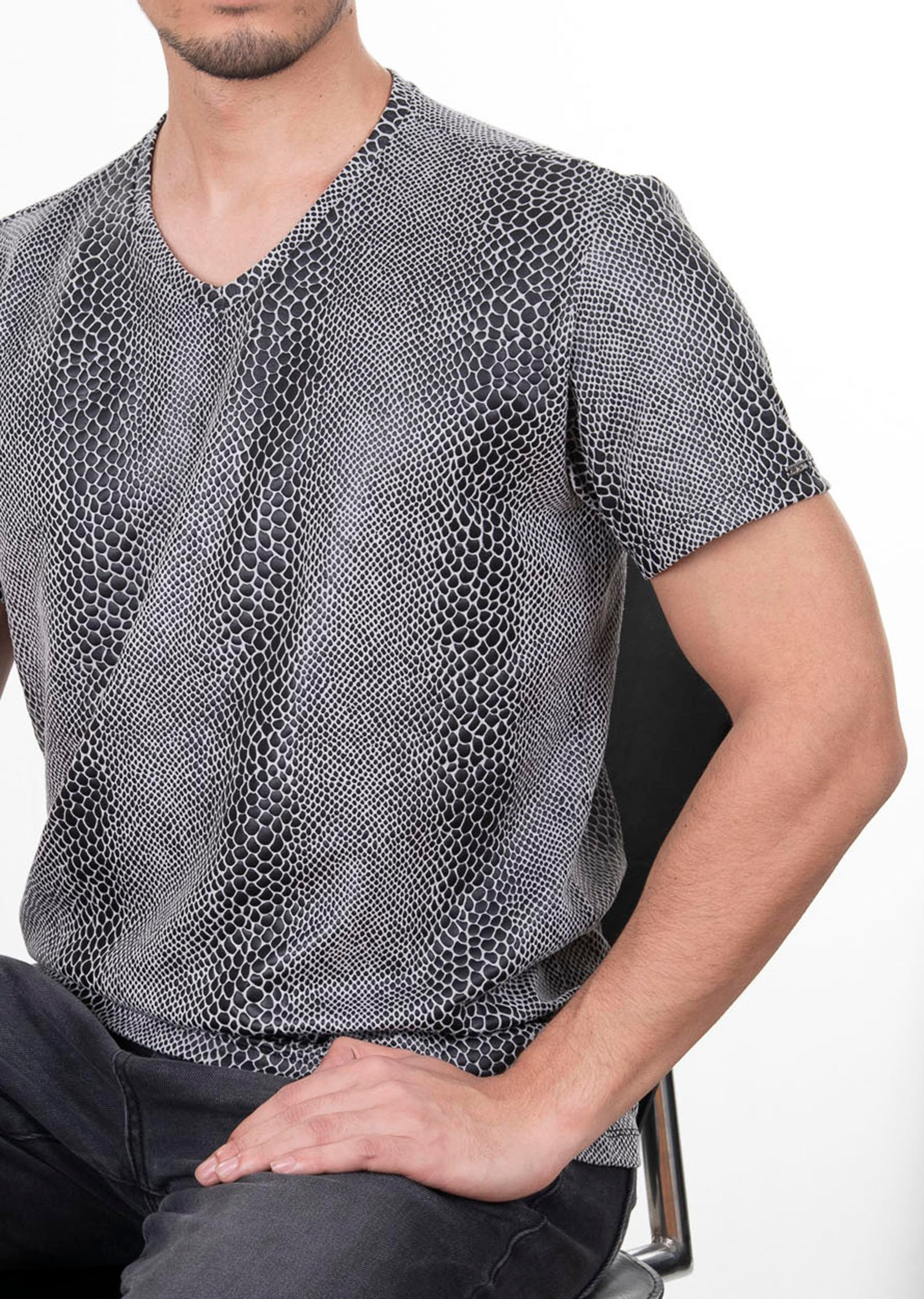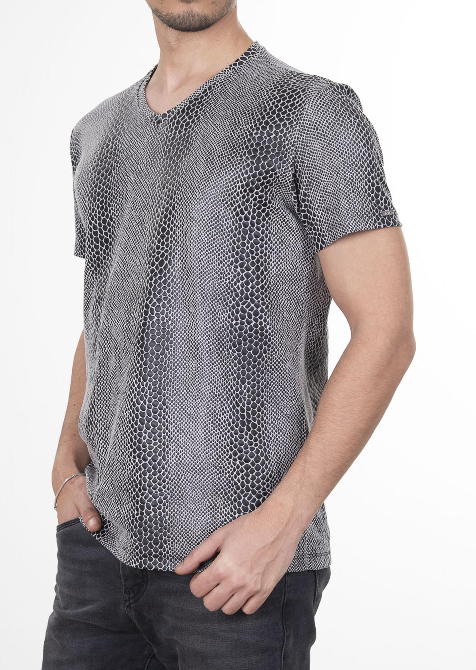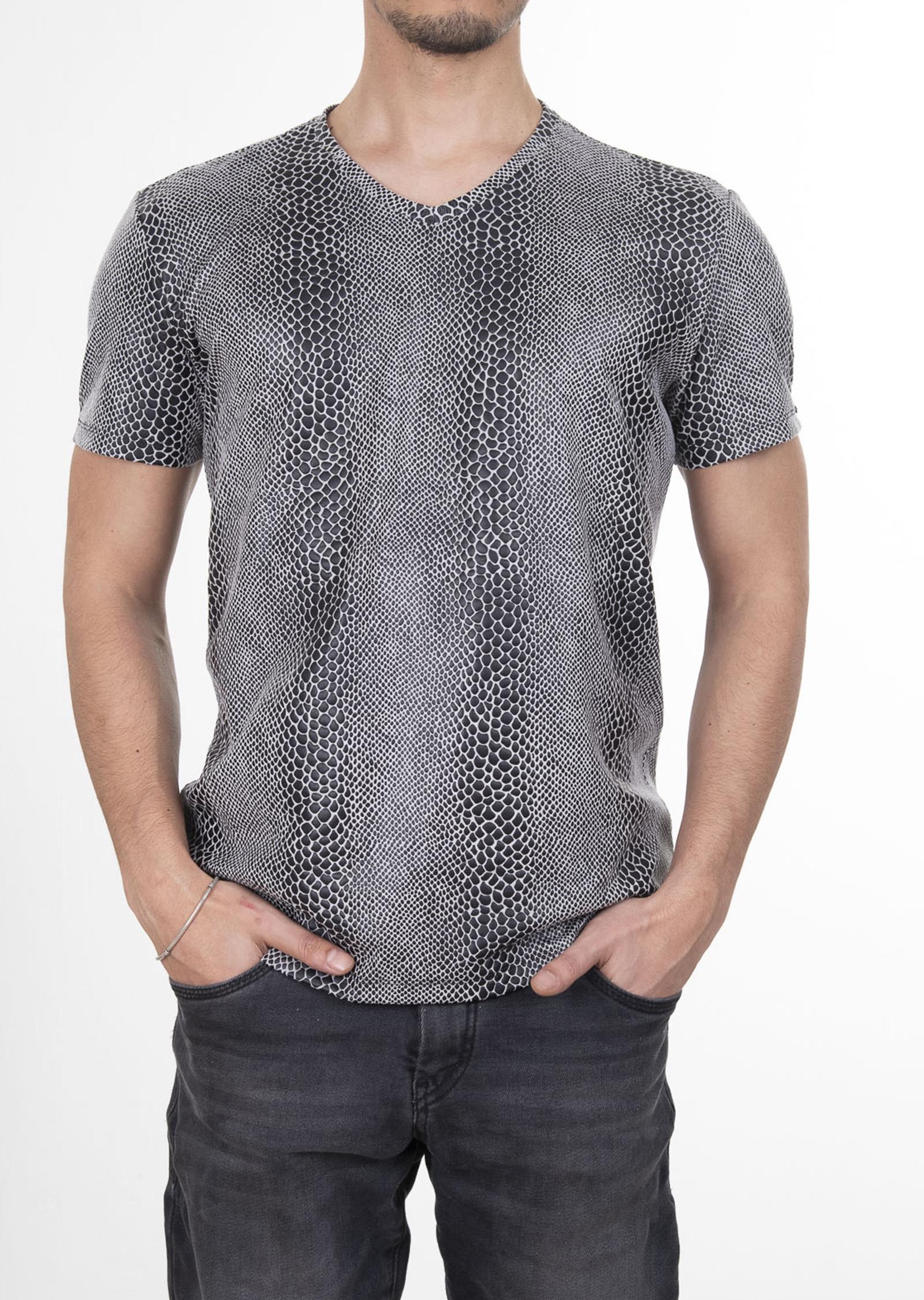 Yılan Derisi Desenli V Yaka T-Shirt (ST-90050-20 09)